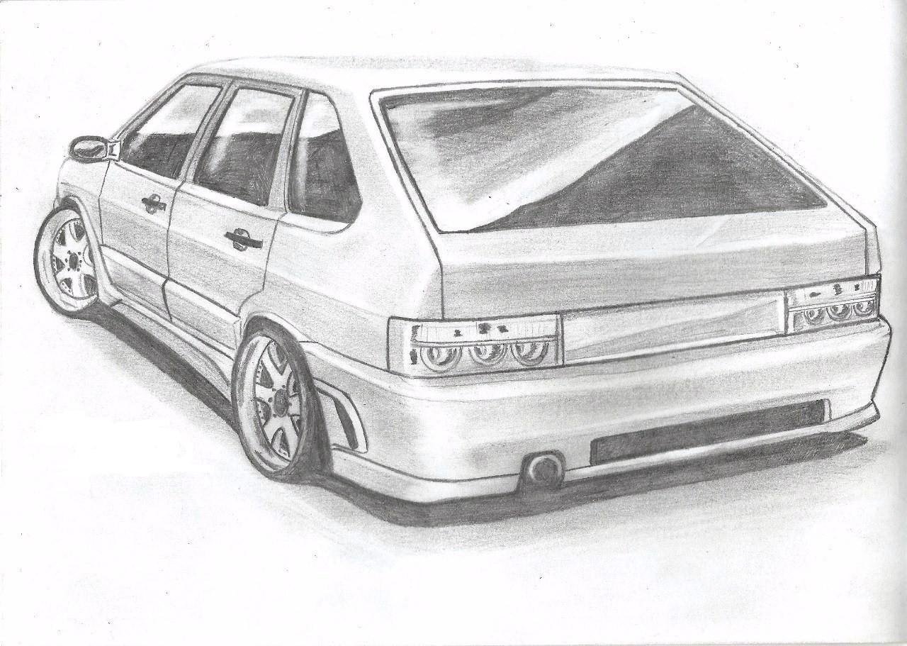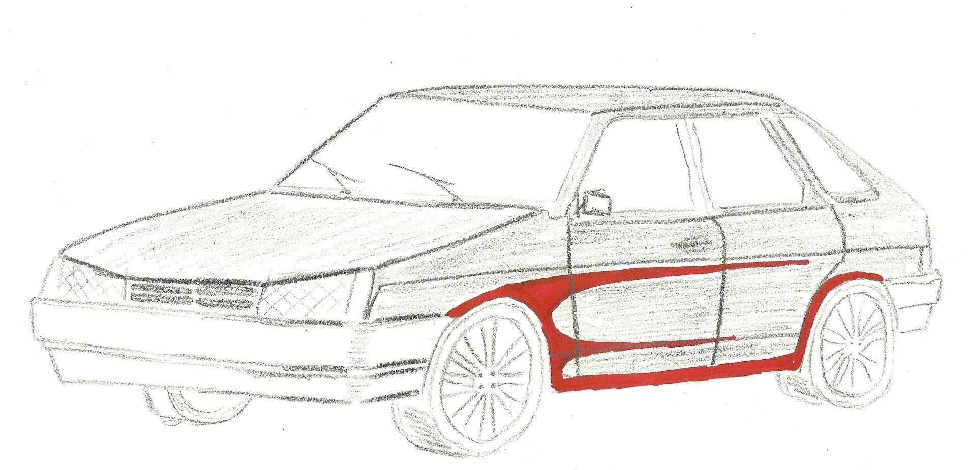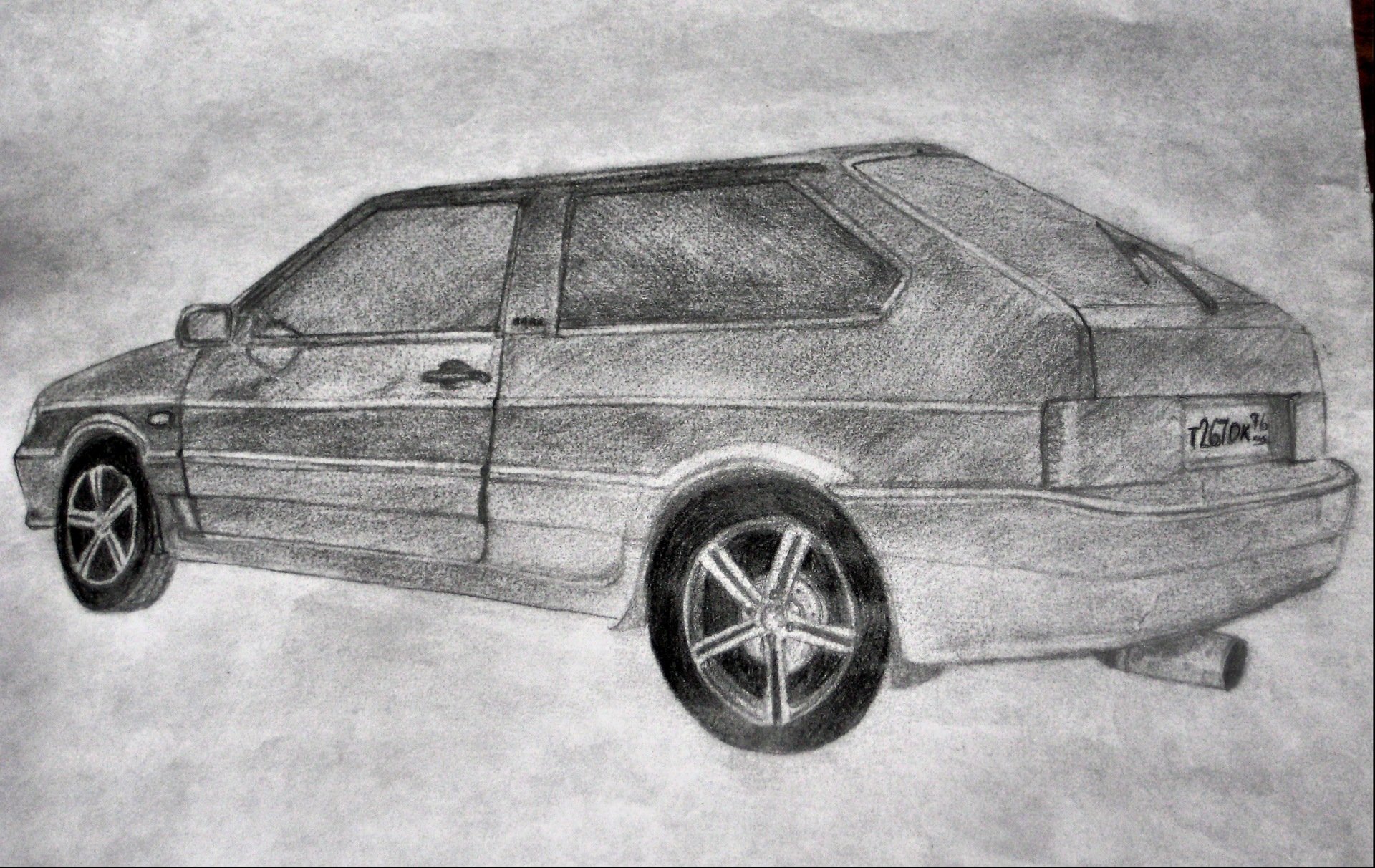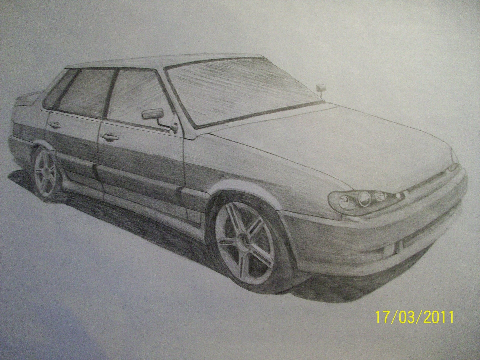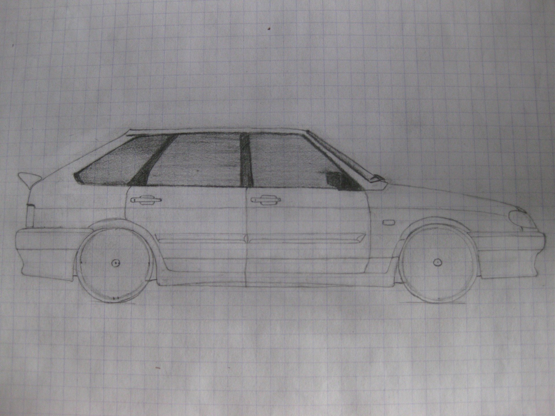 Нарисовать ВАЗ 2108 карандашом легко сбоку