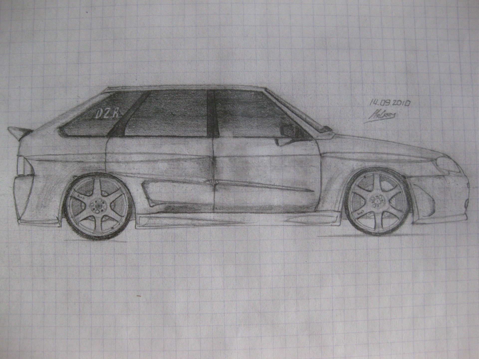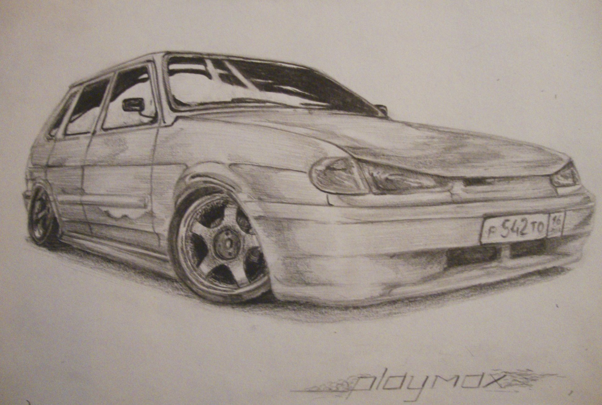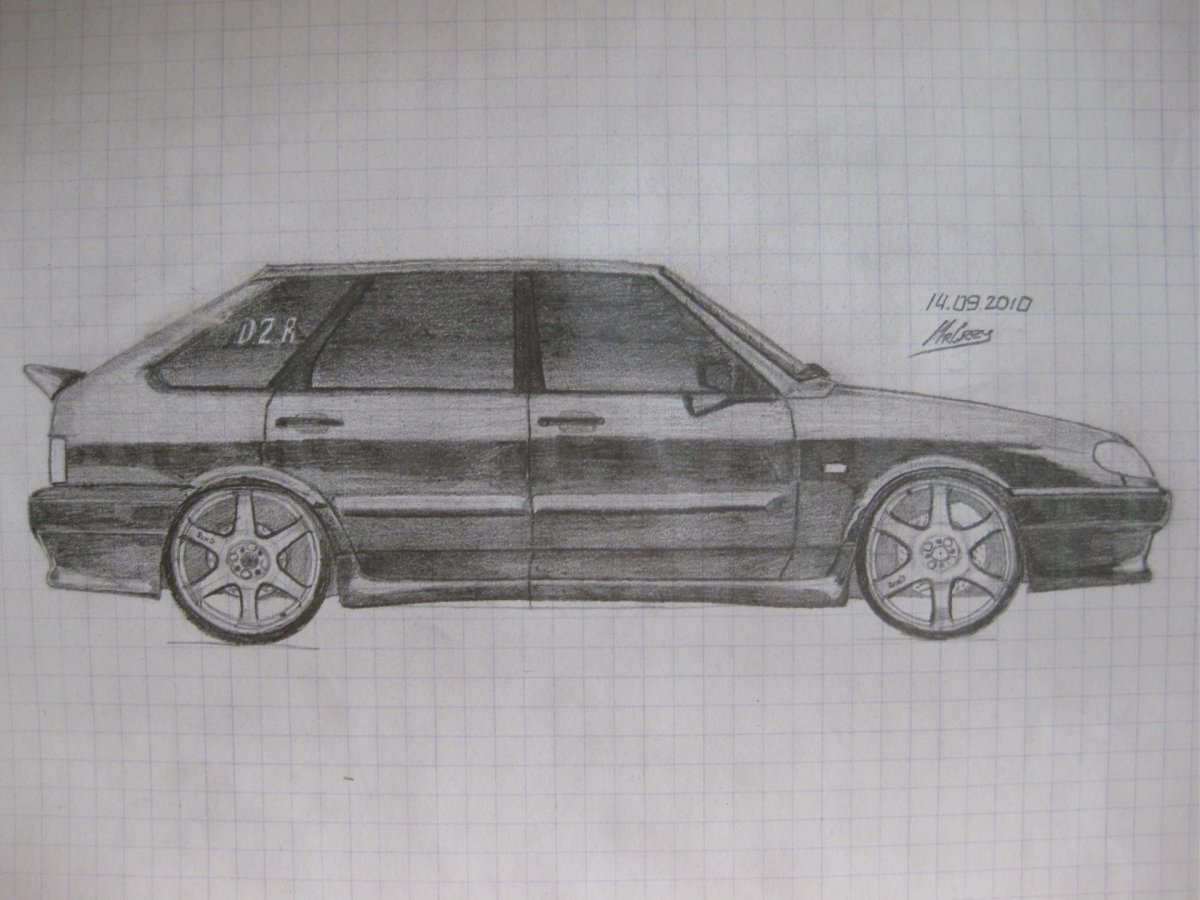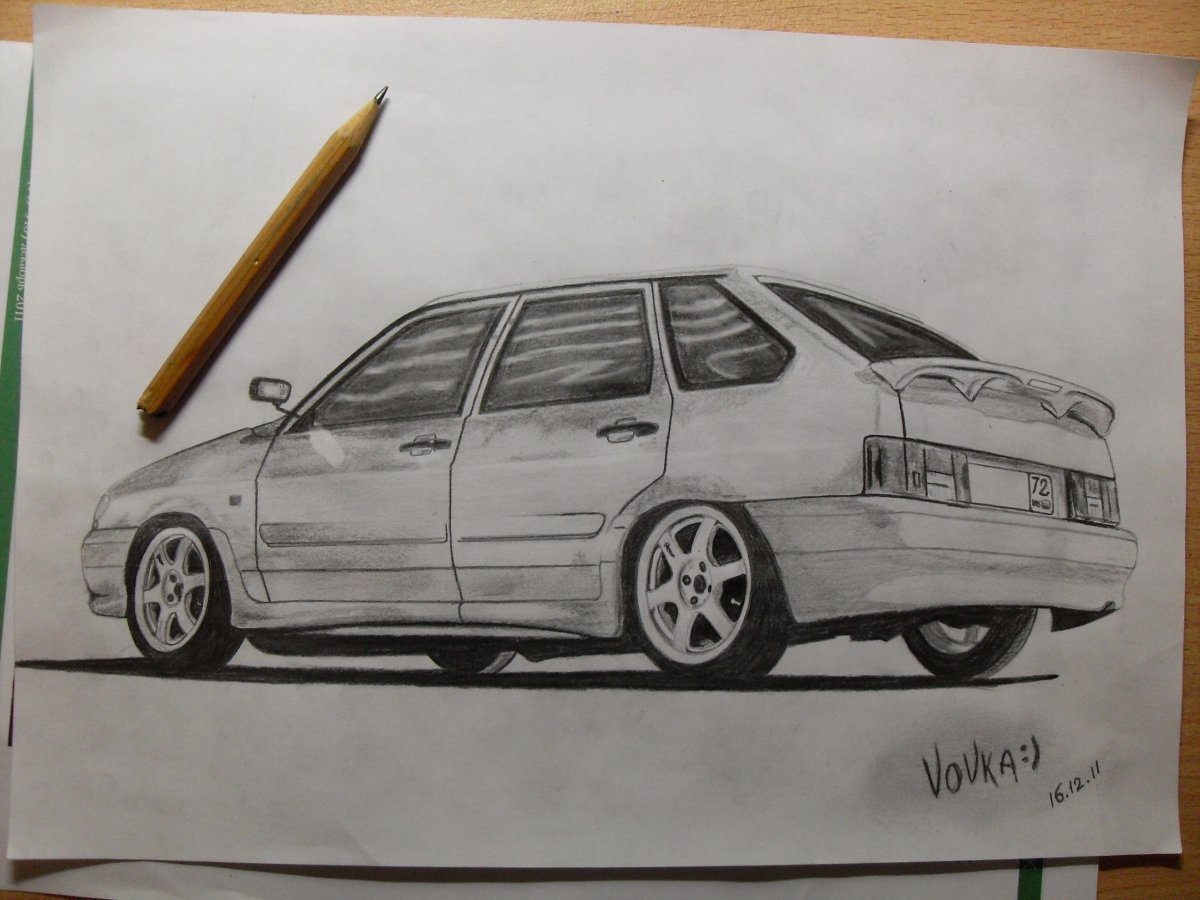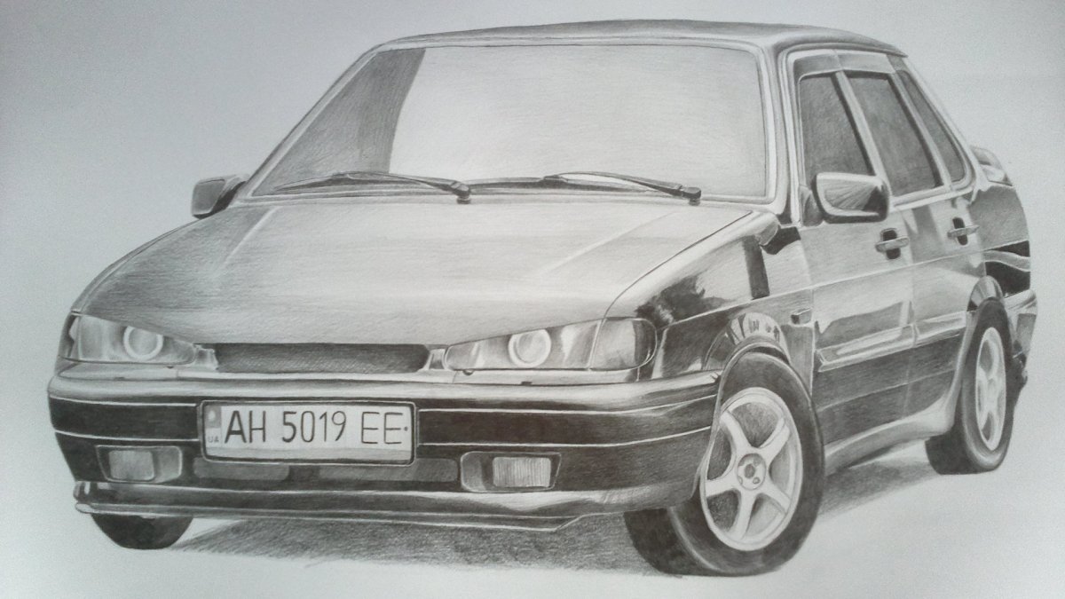 Нарисовать ВАЗ 2108 карандашом легко сбоку