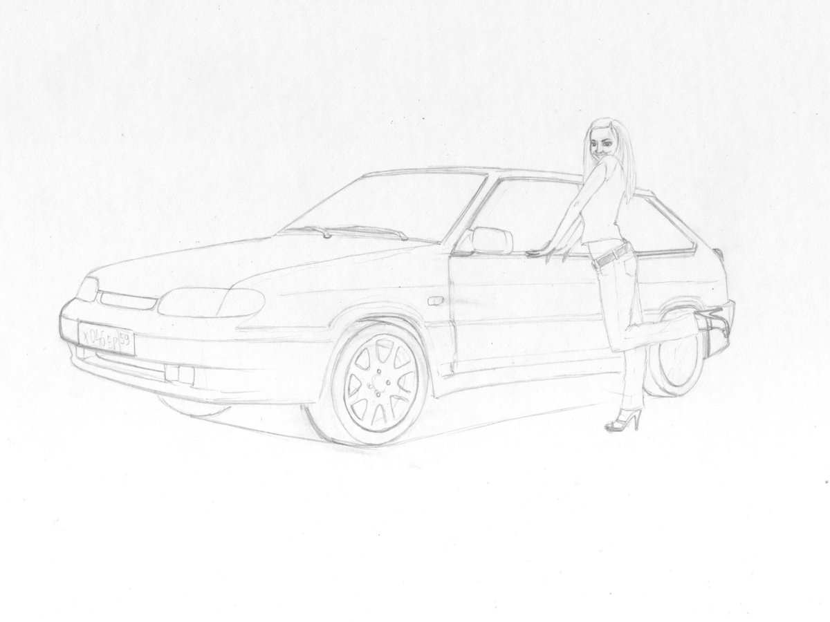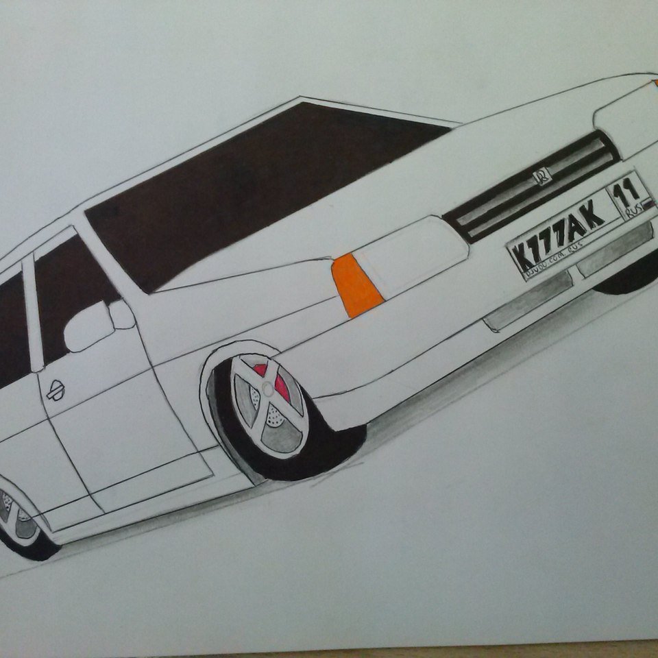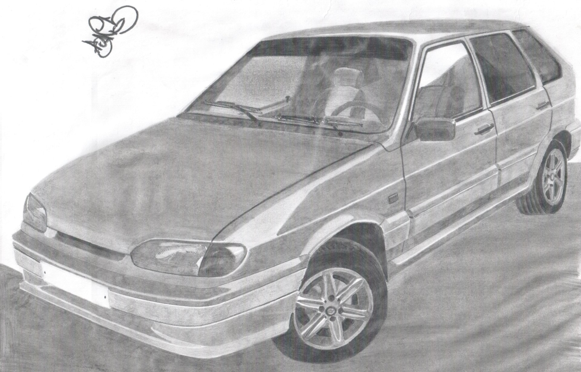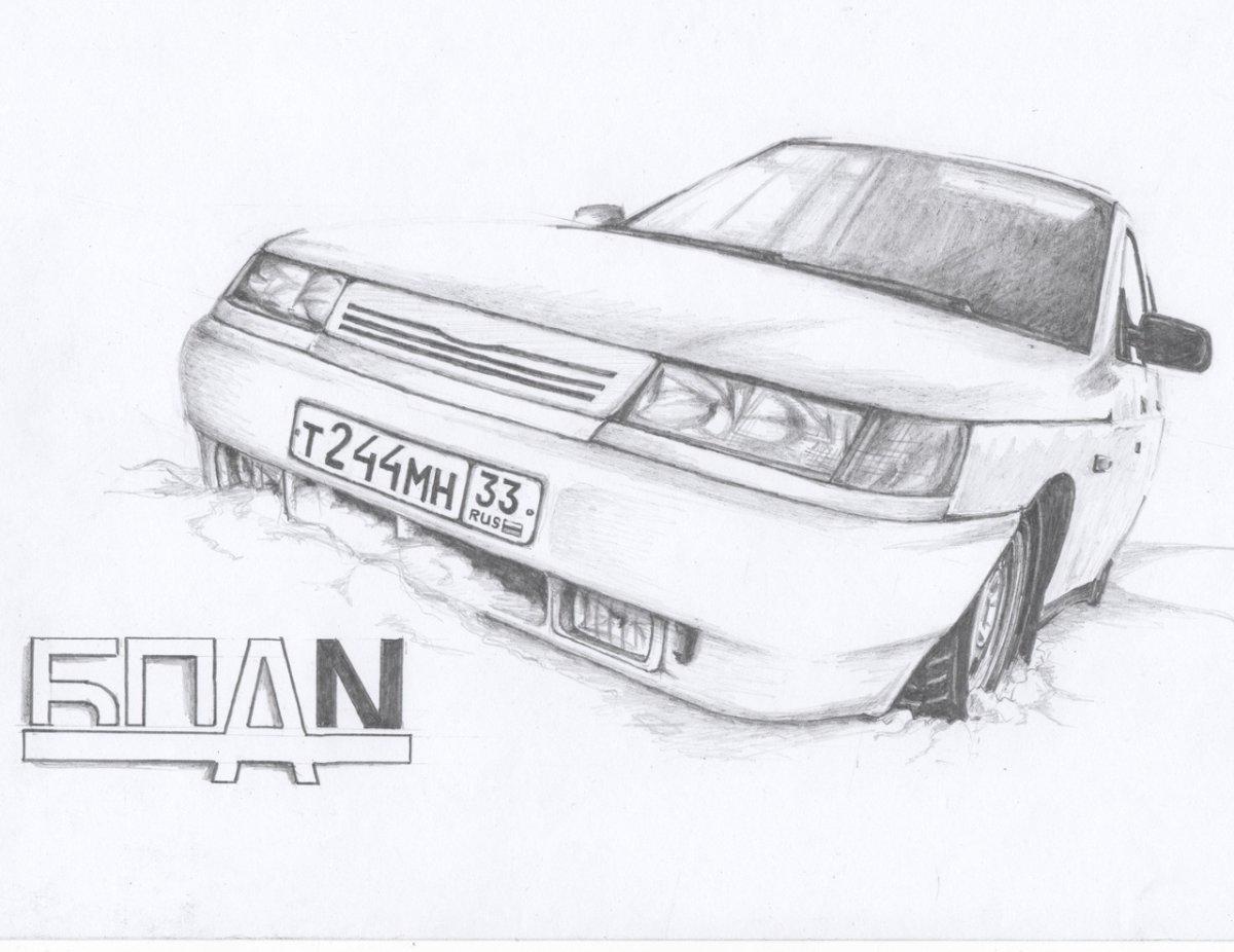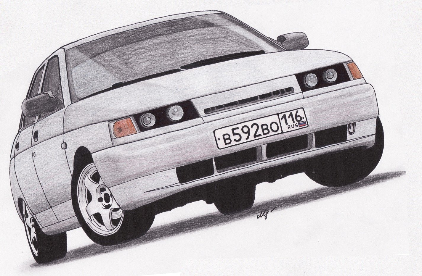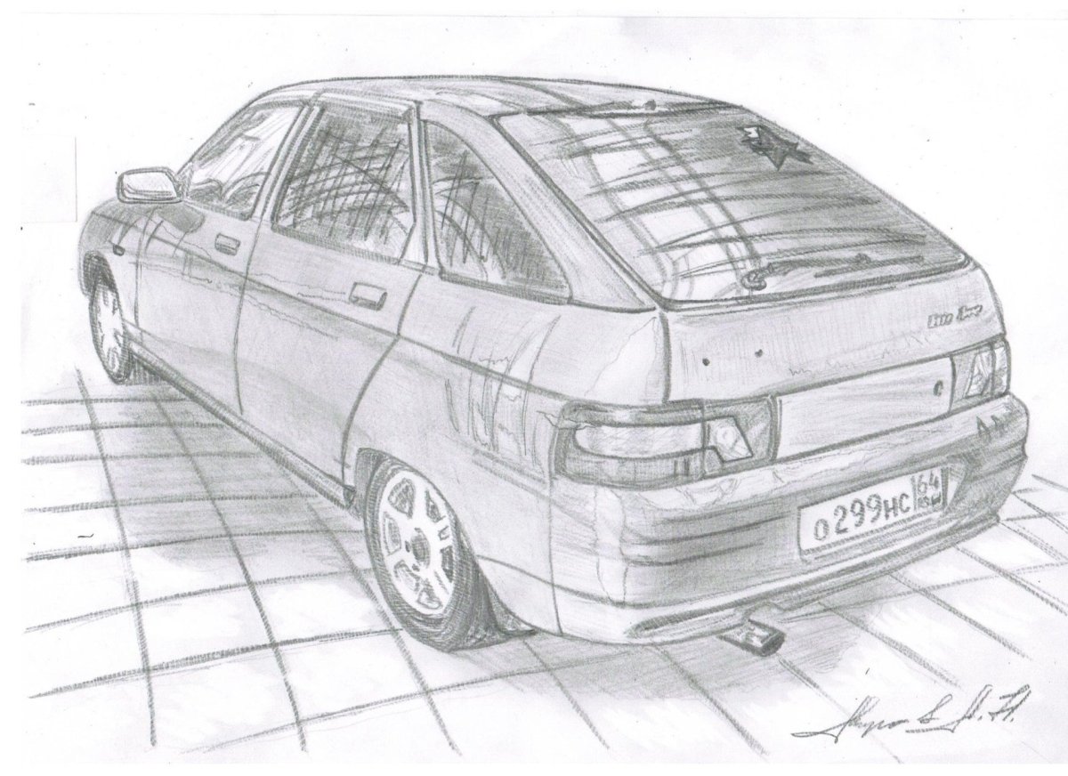 Нарисовать ВАЗ 2108 карандашом легко сбоку