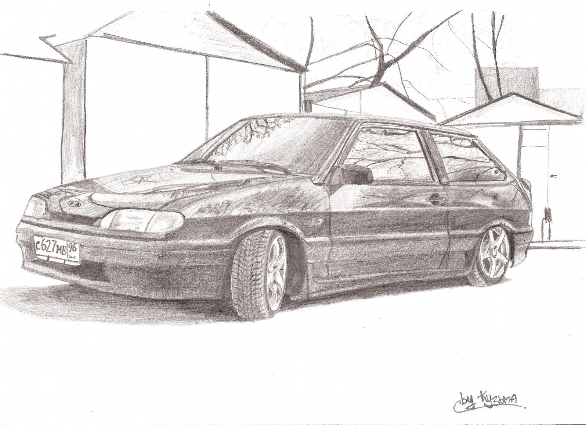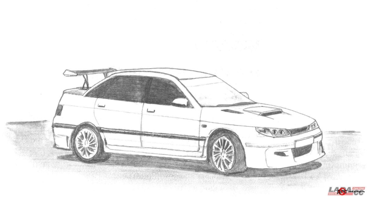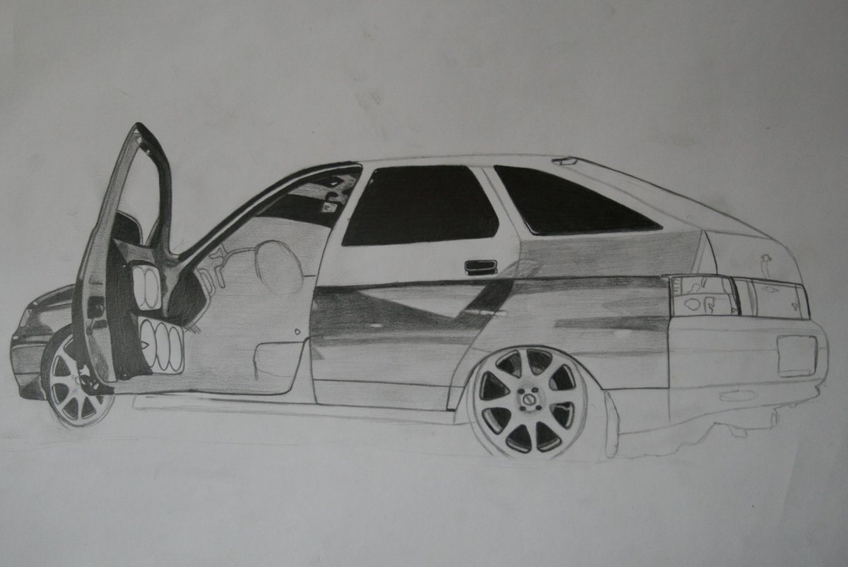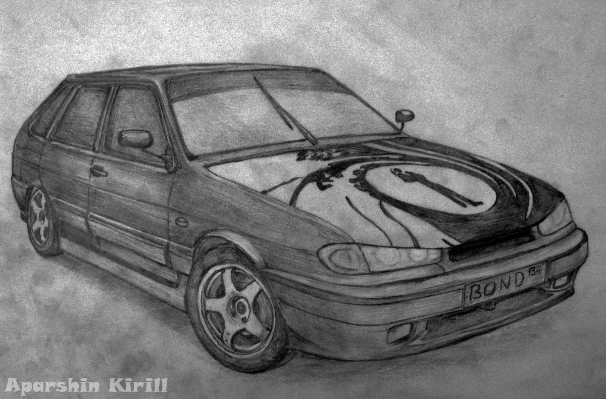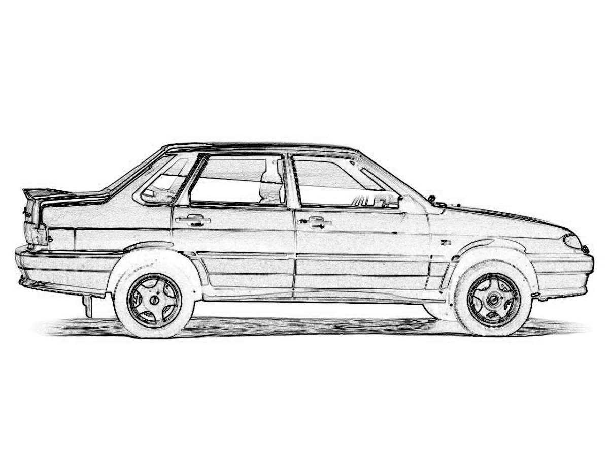 Нарисовать ВАЗ 2108 карандашом легко сбоку