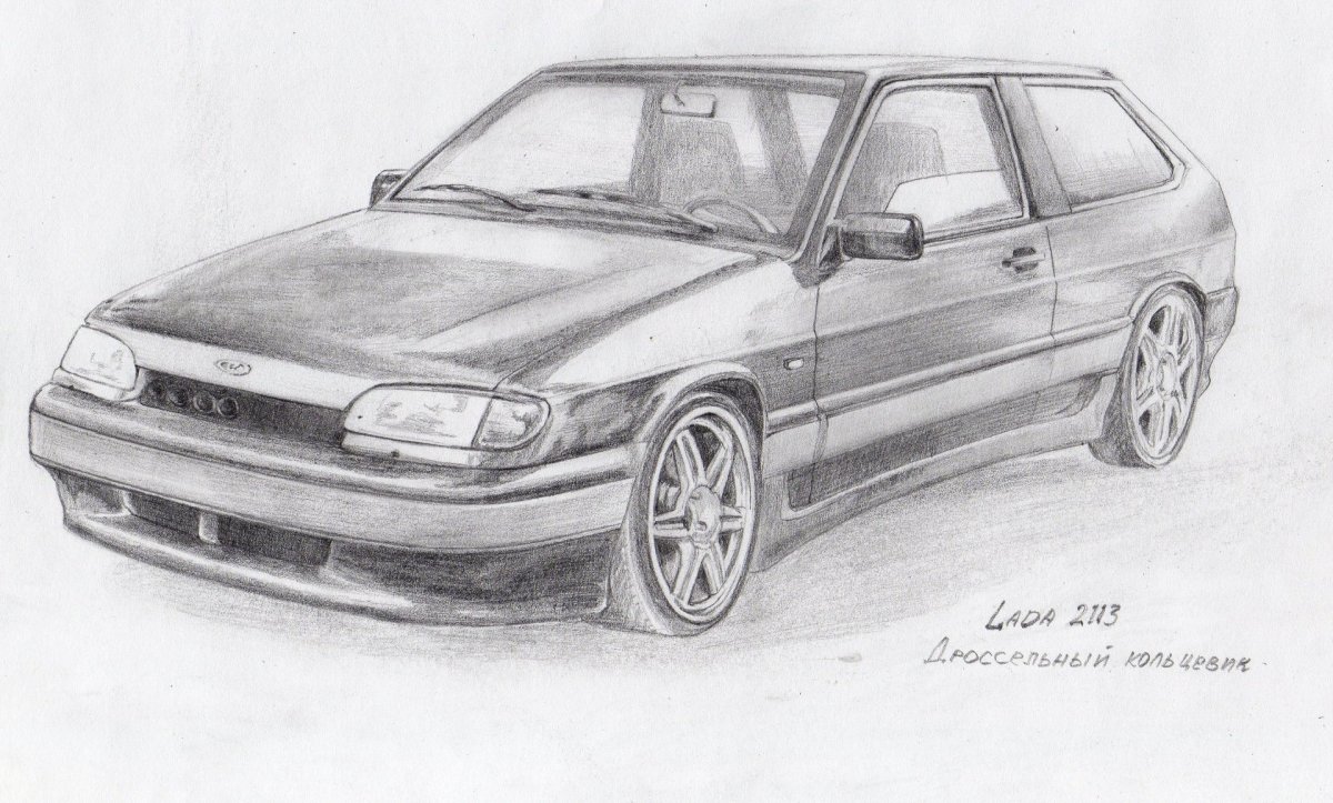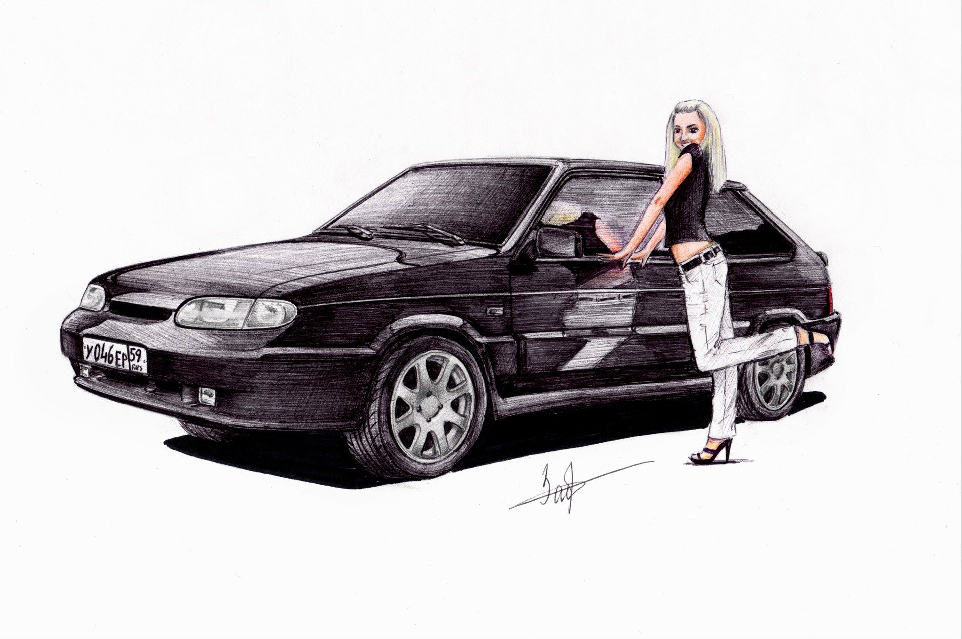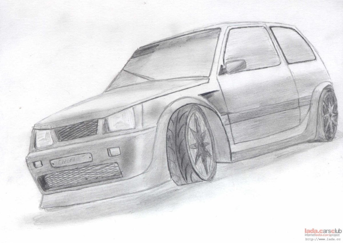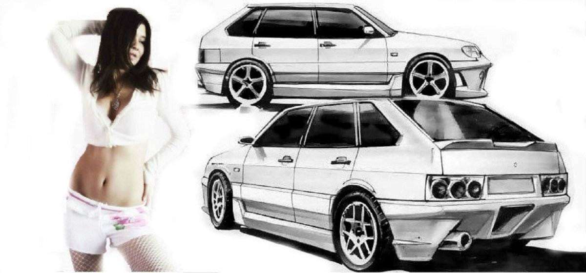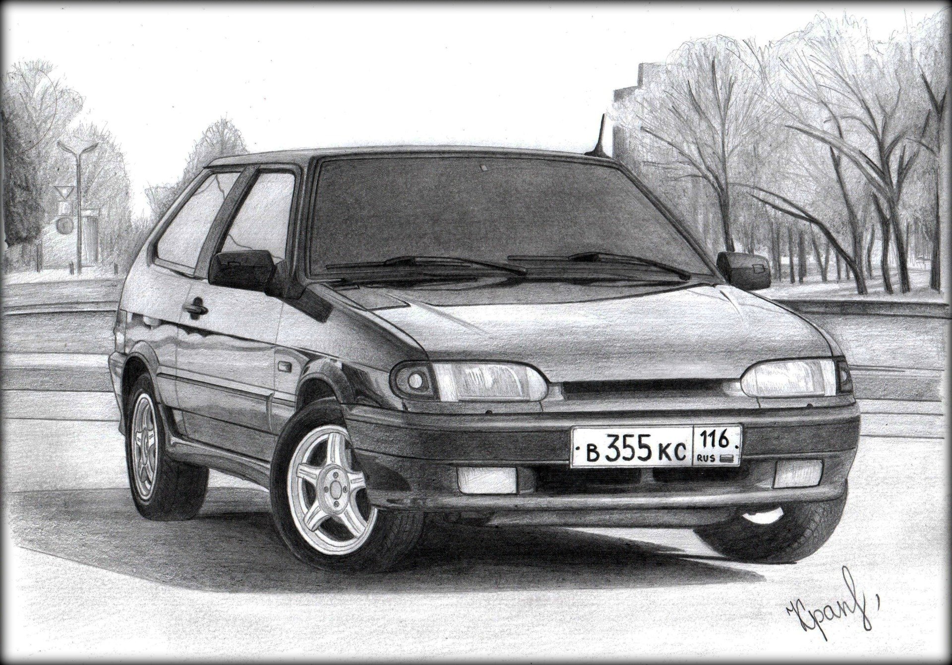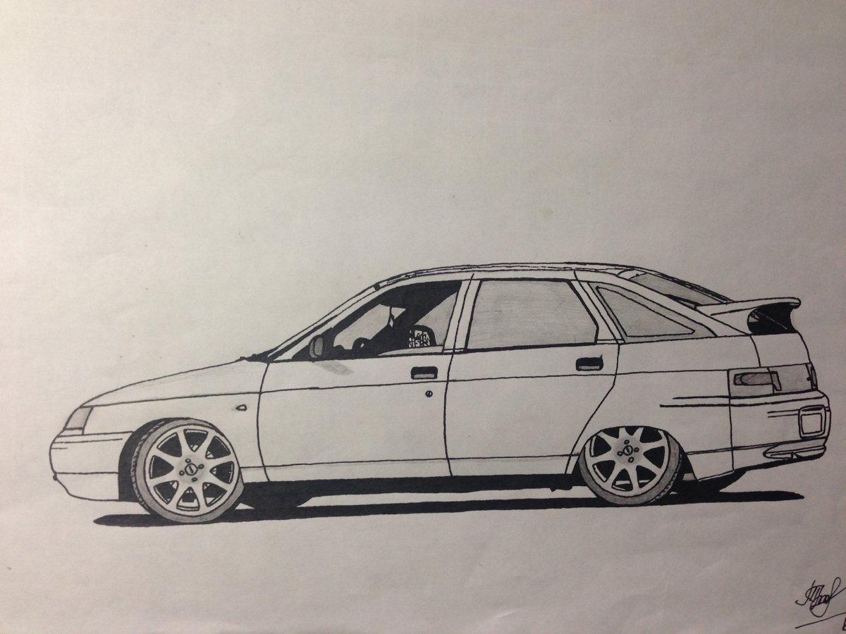 Нарисовать ВАЗ 2108 карандашом легко сбоку
