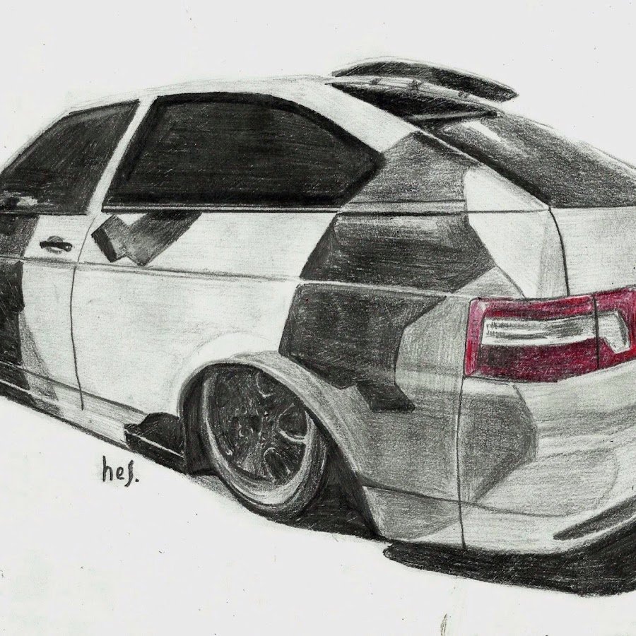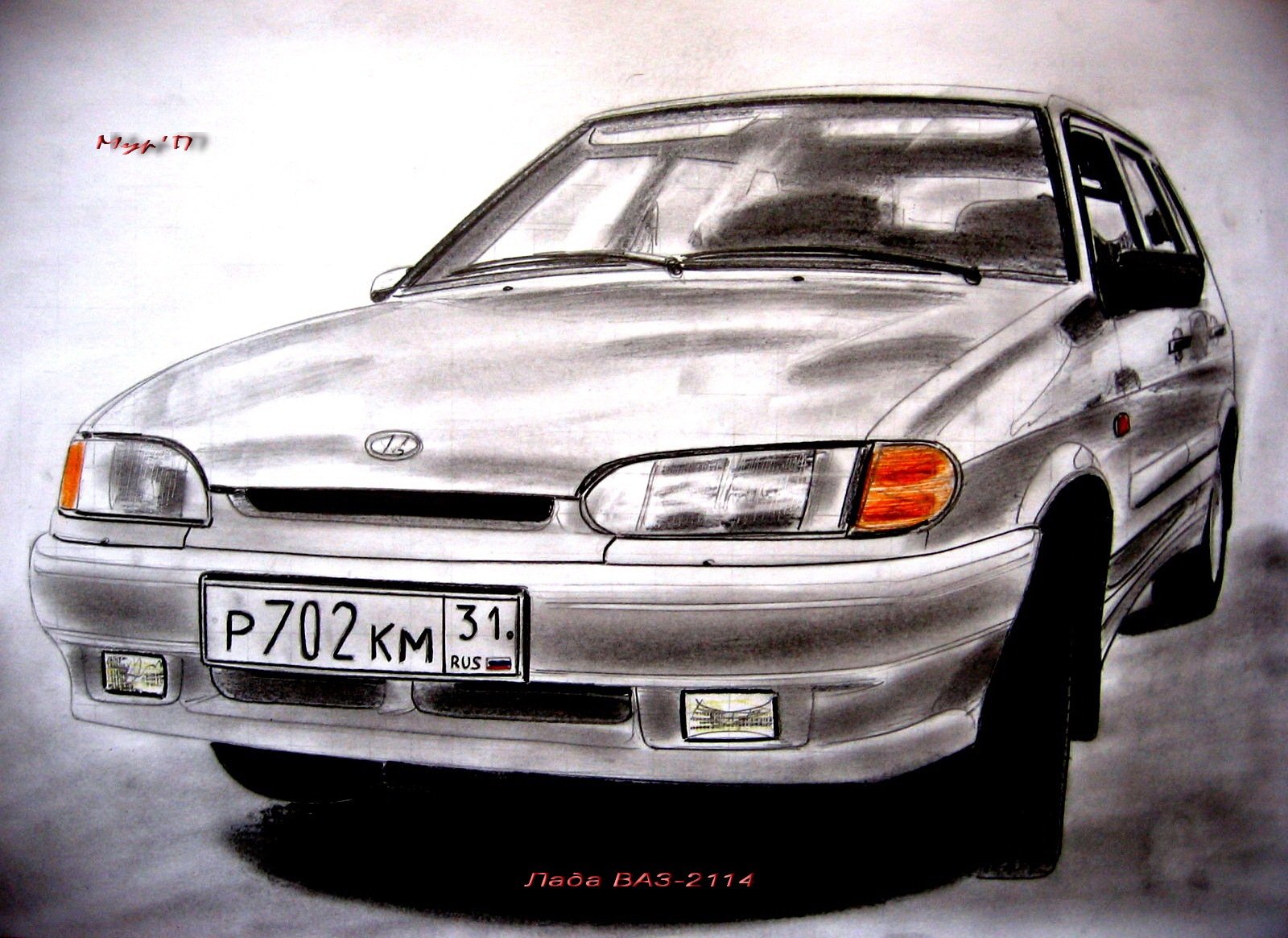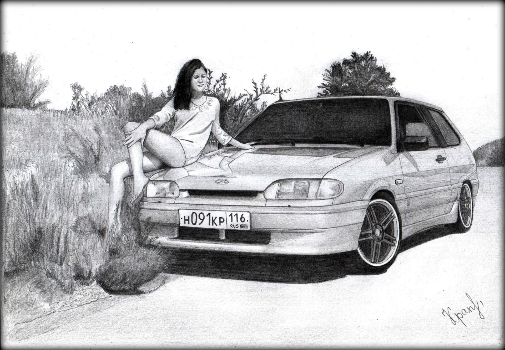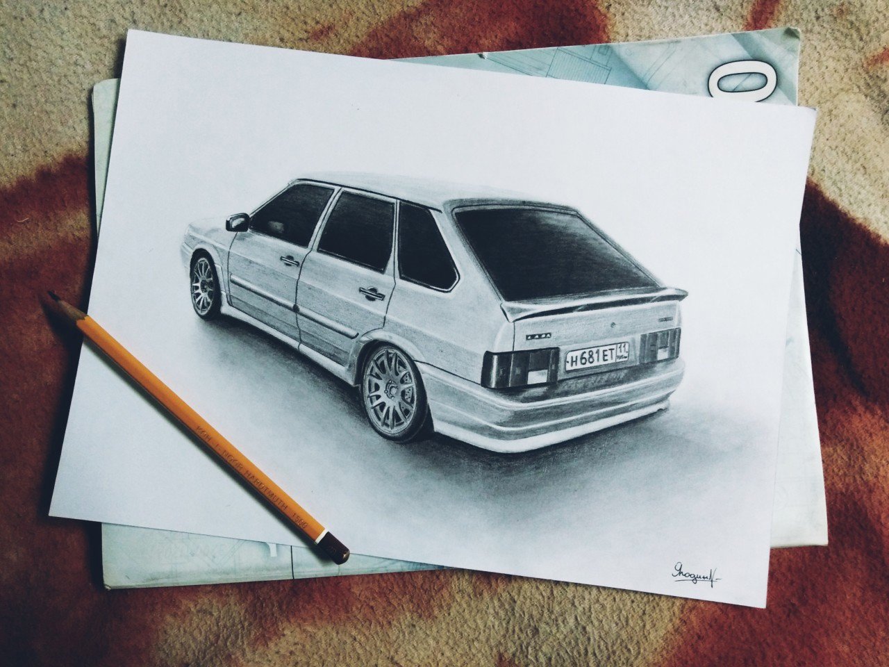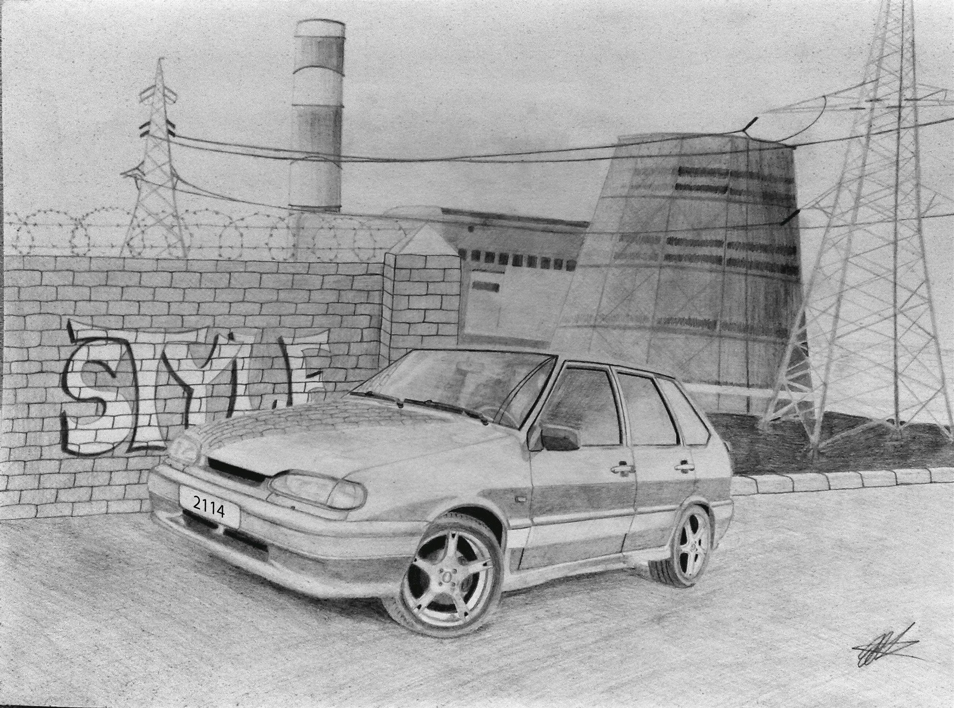 Нарисовать ВАЗ 2108 карандашом легко сбоку