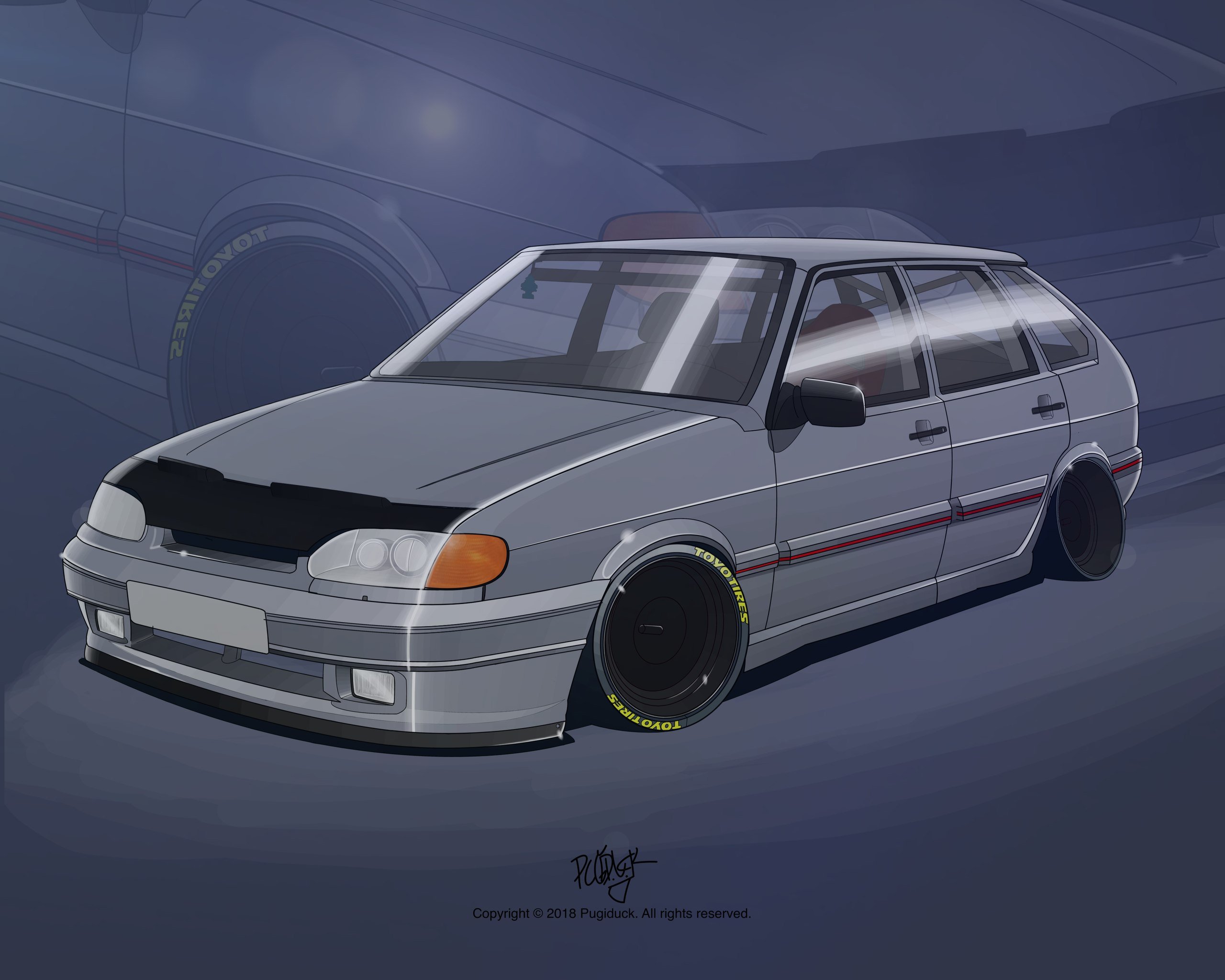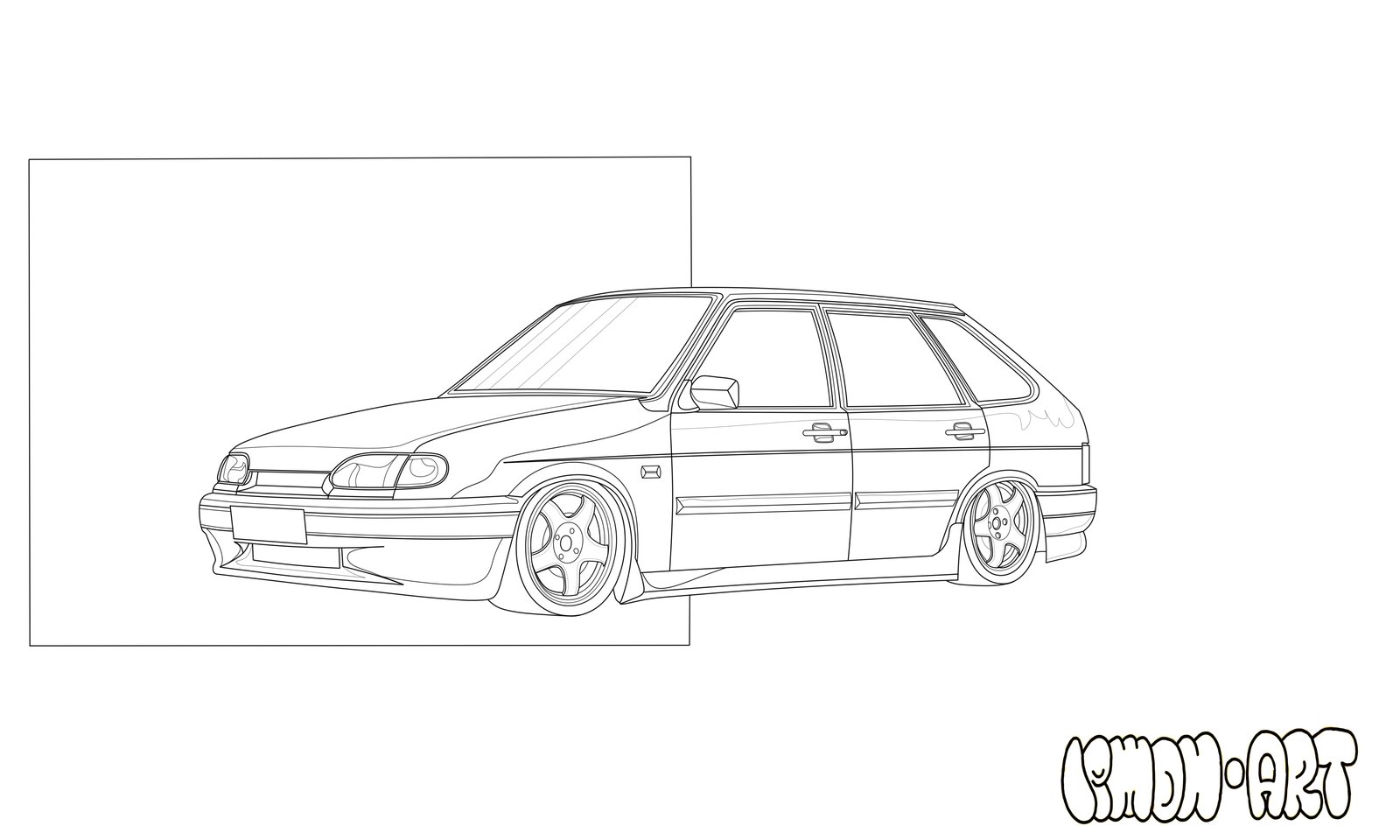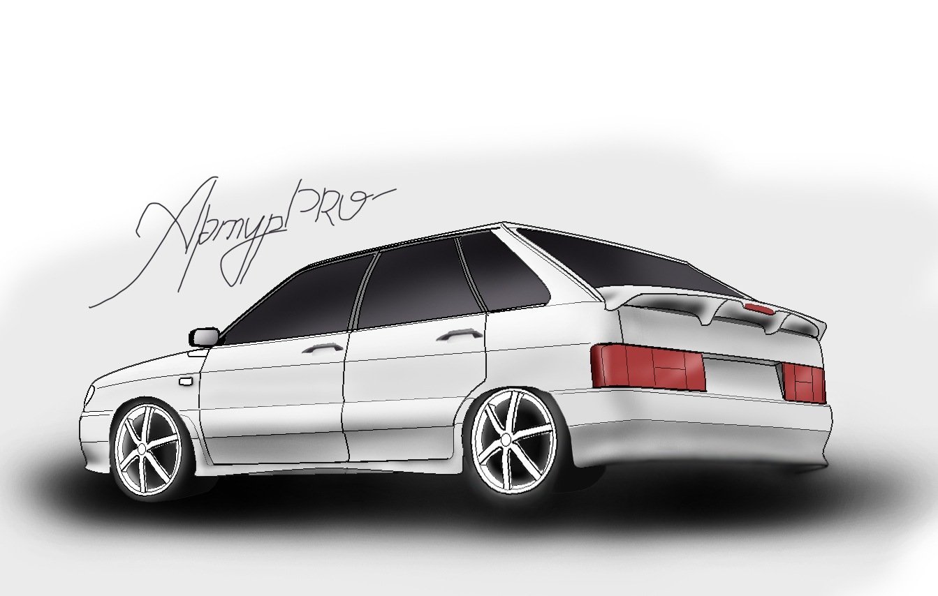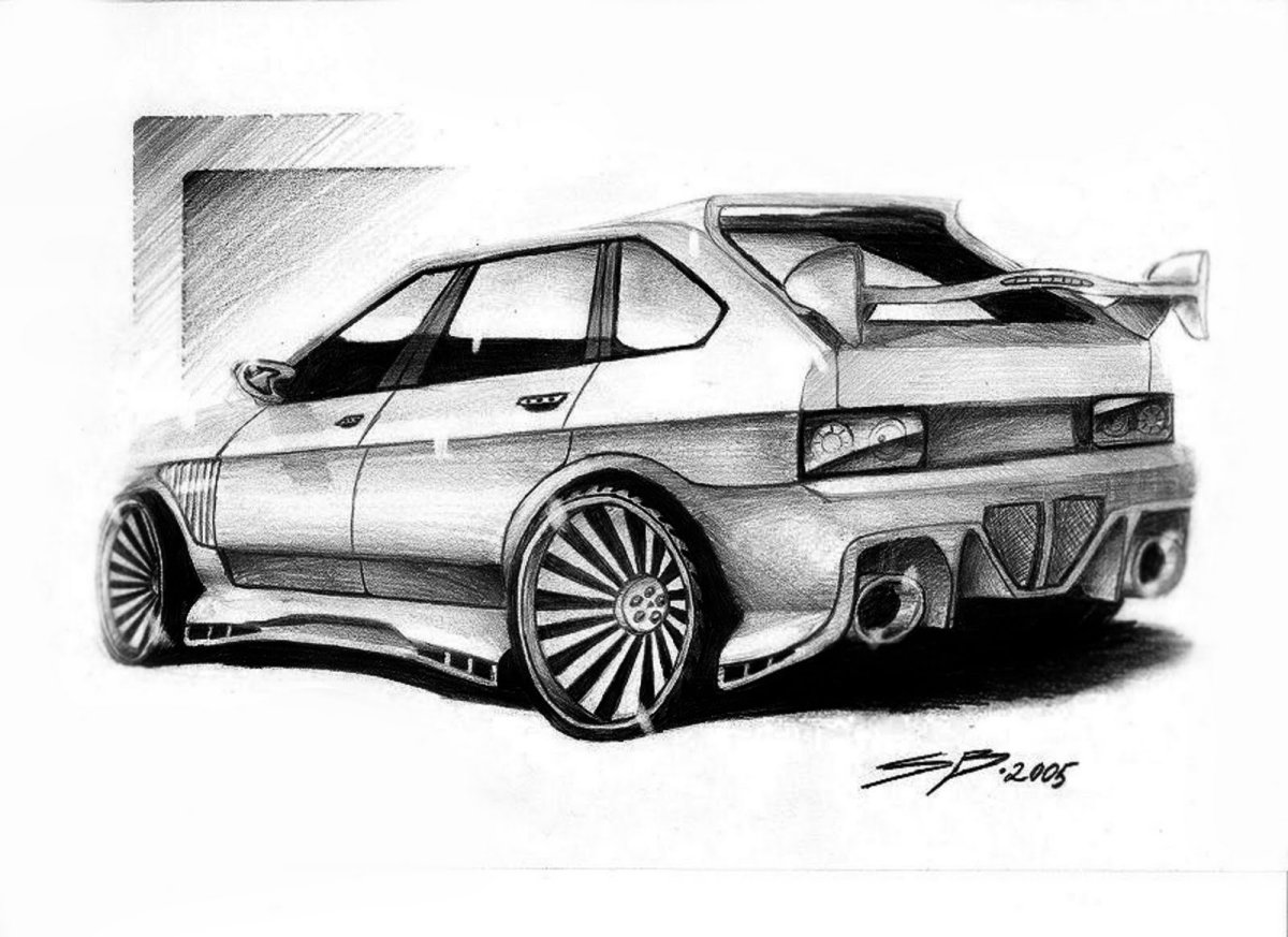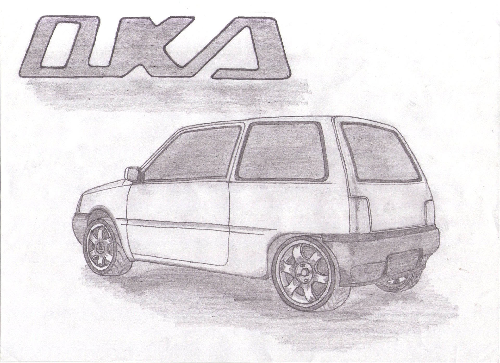 Нарисовать ВАЗ 2108 карандашом легко сбоку