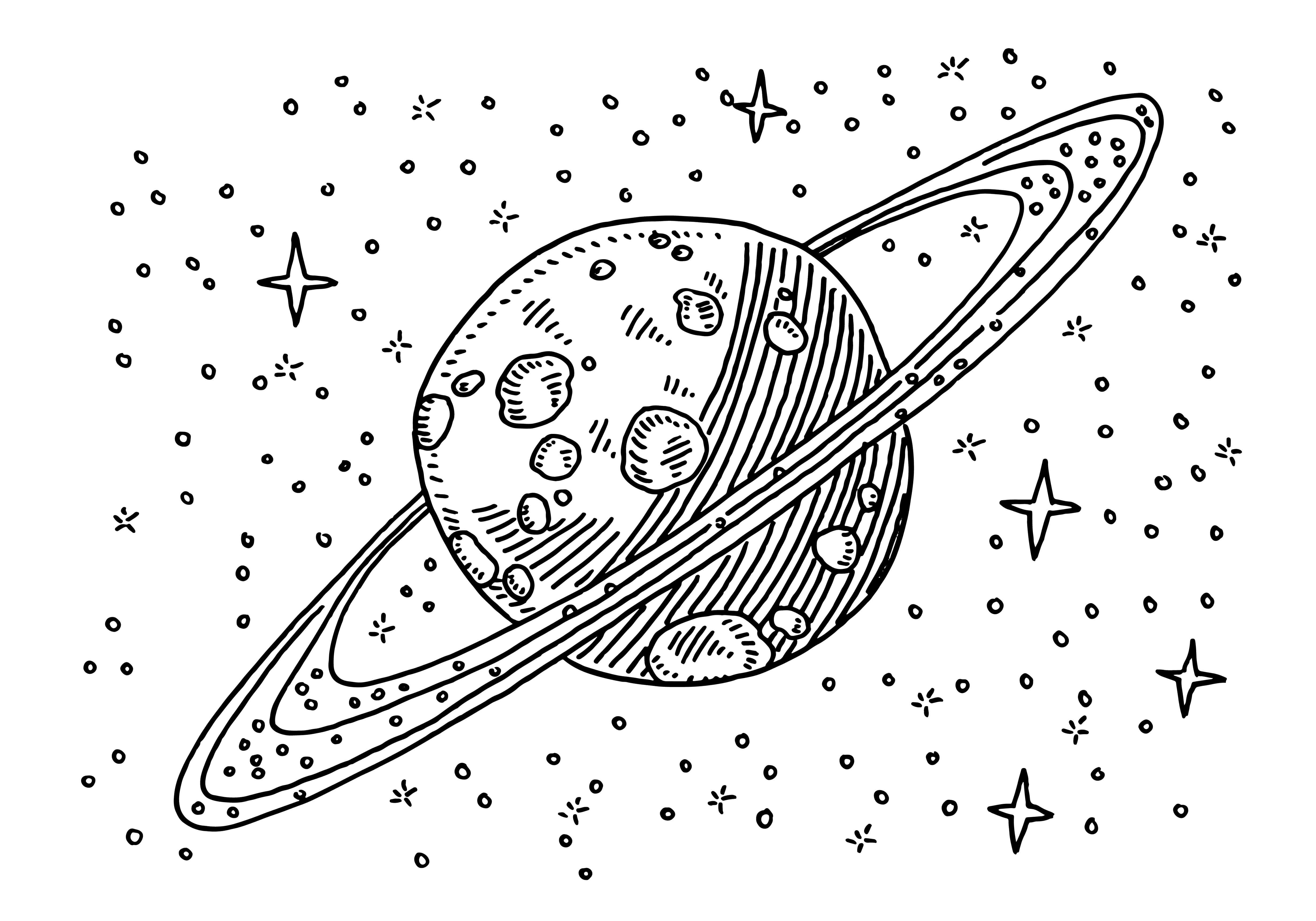 Рисунок планеты Сатурн из космоса карандашом маленькие