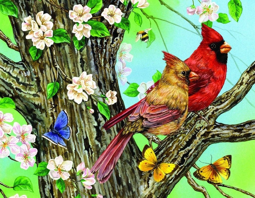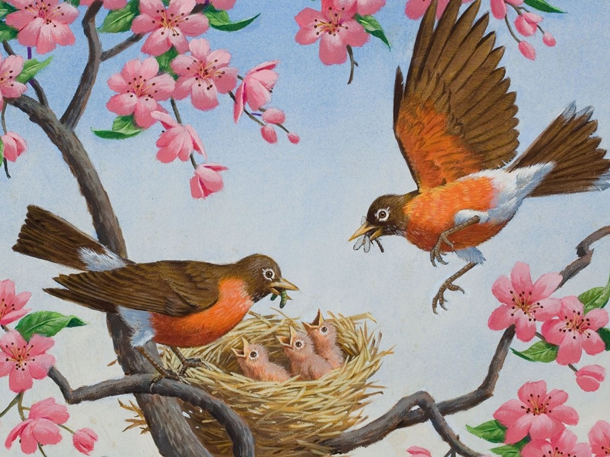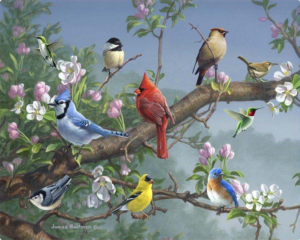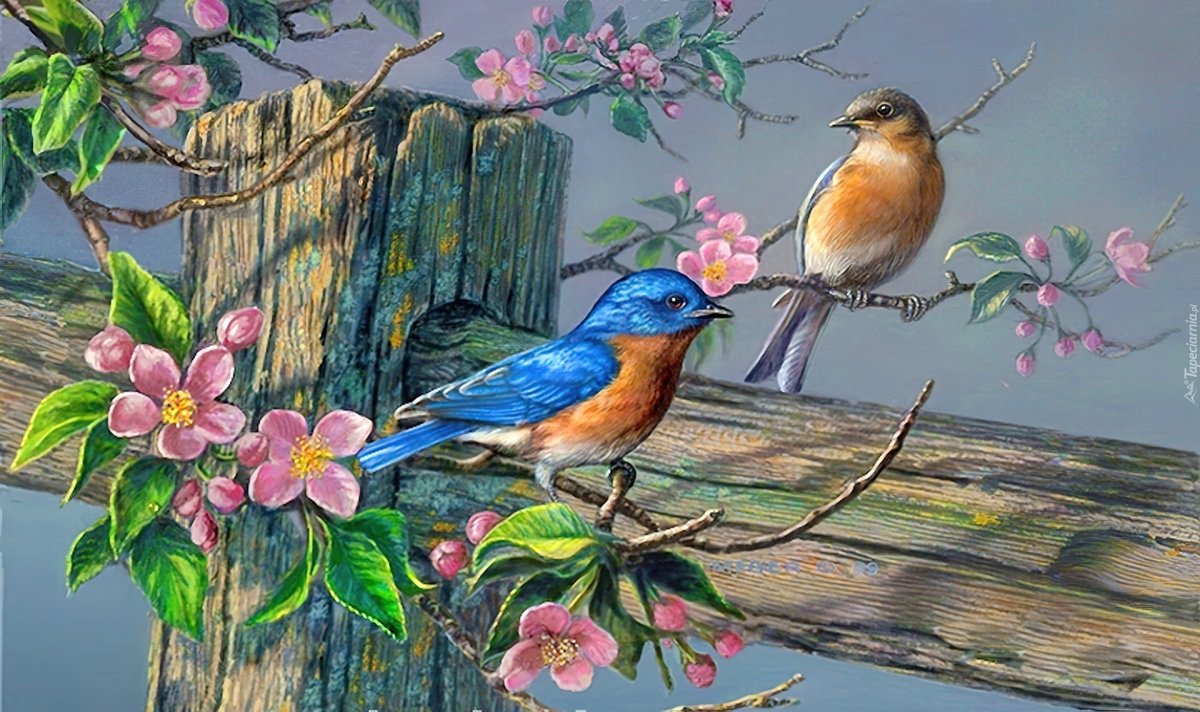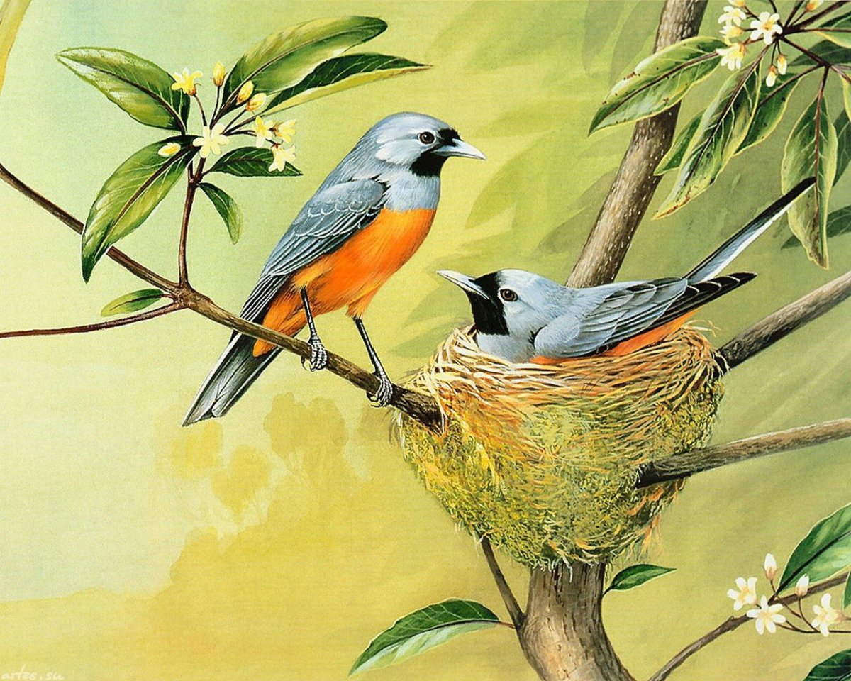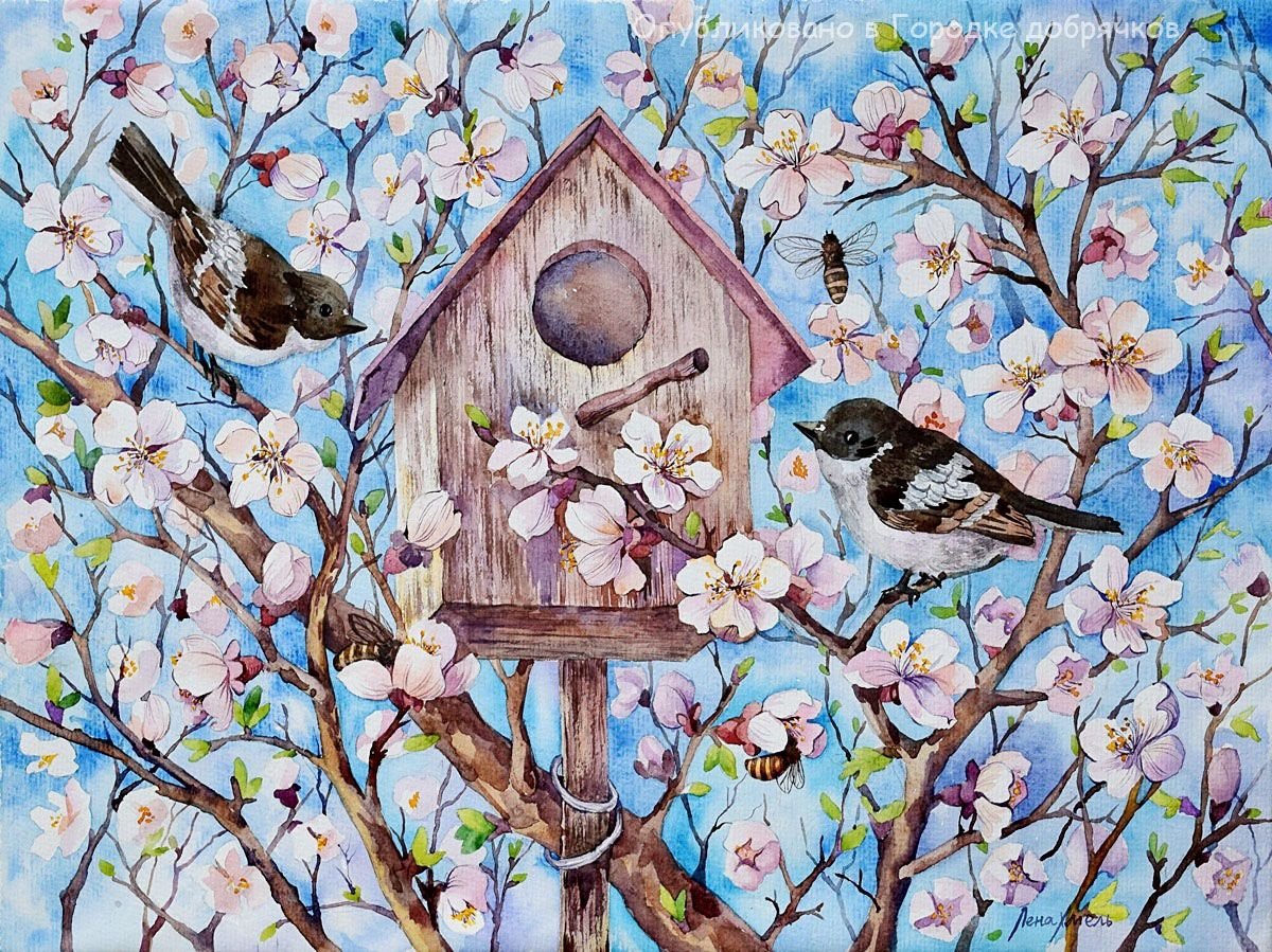 Весенние птицы живопись