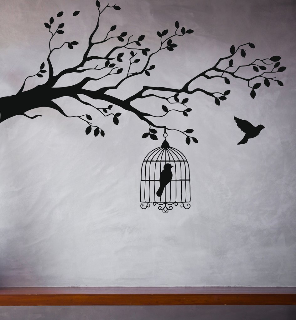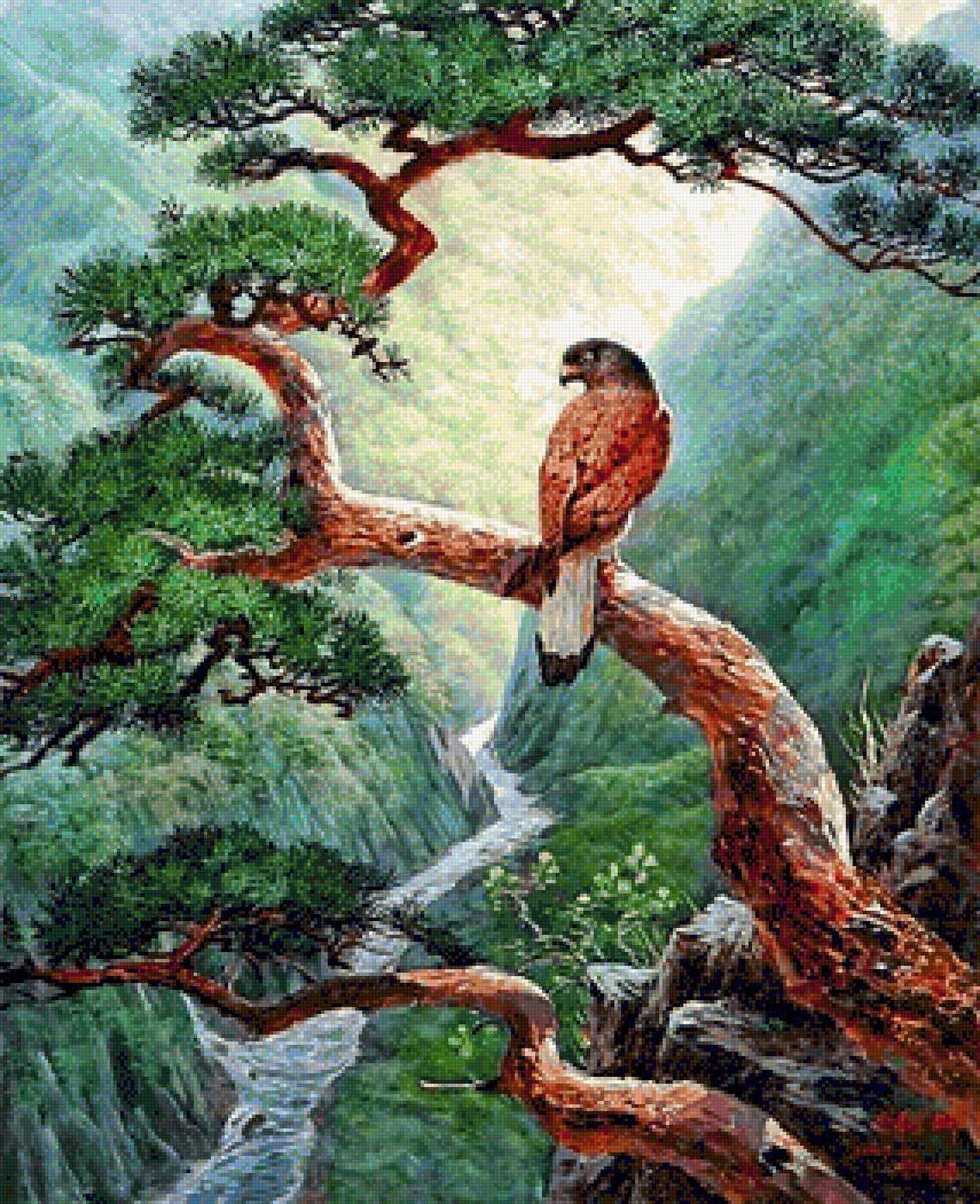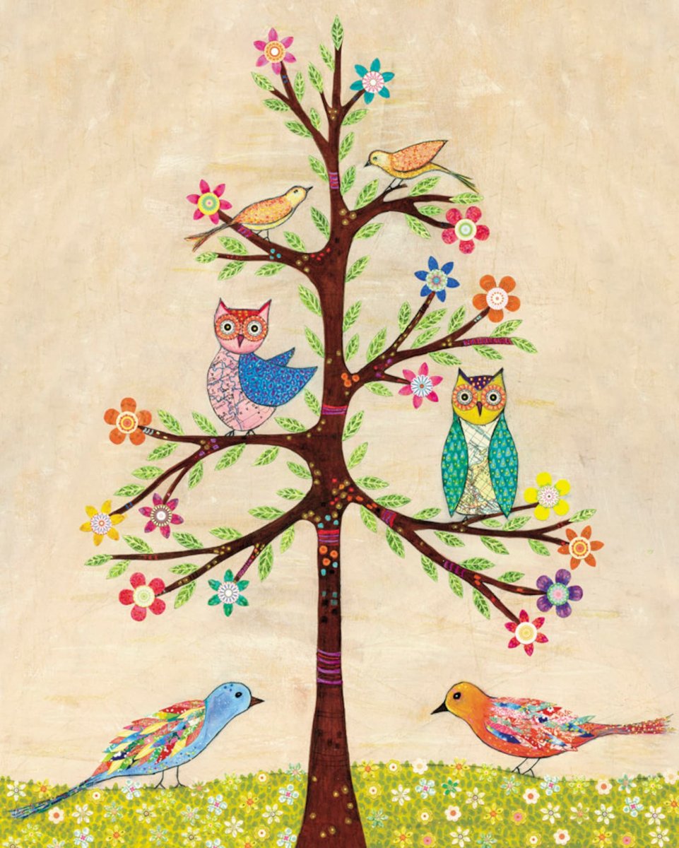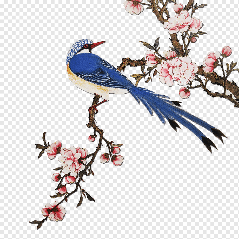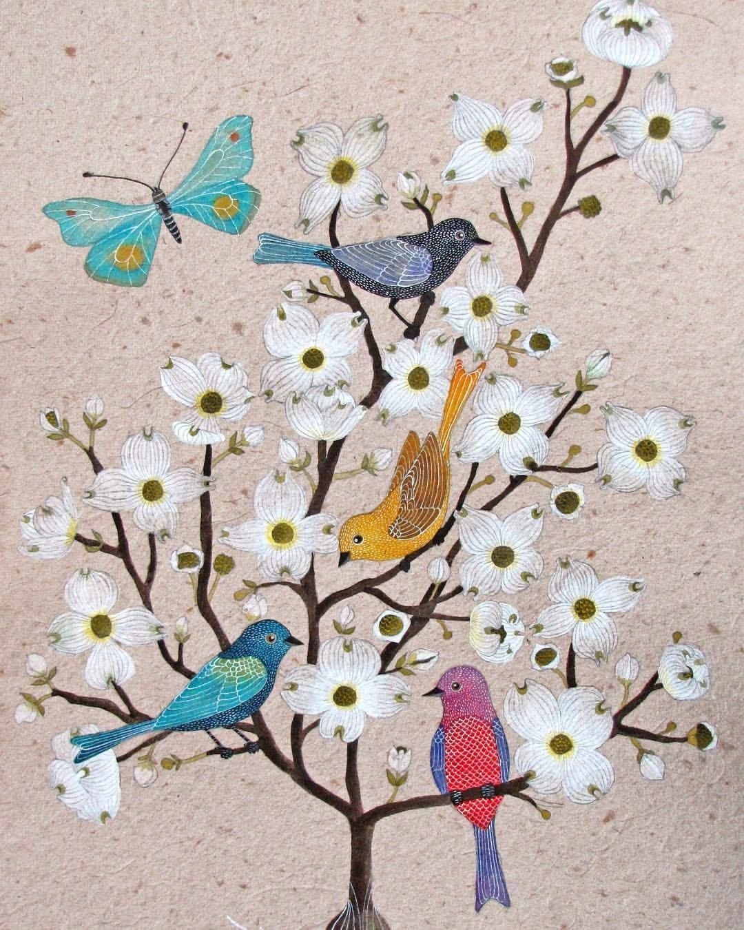 Живопись птицы на деревьях