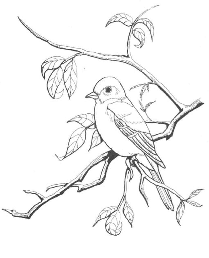 Птичка на ветке рисунок карандашом
