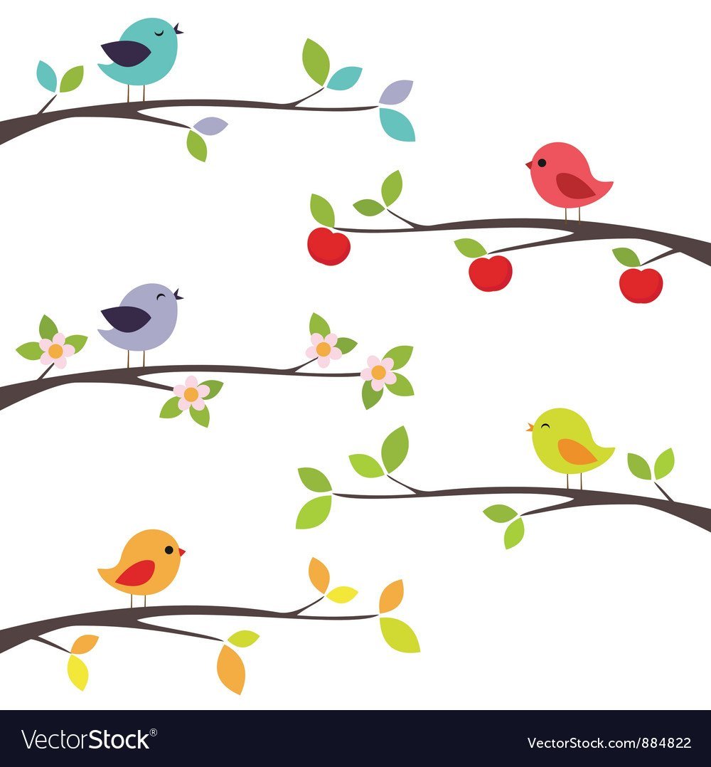 Птички на ветке мультяшные