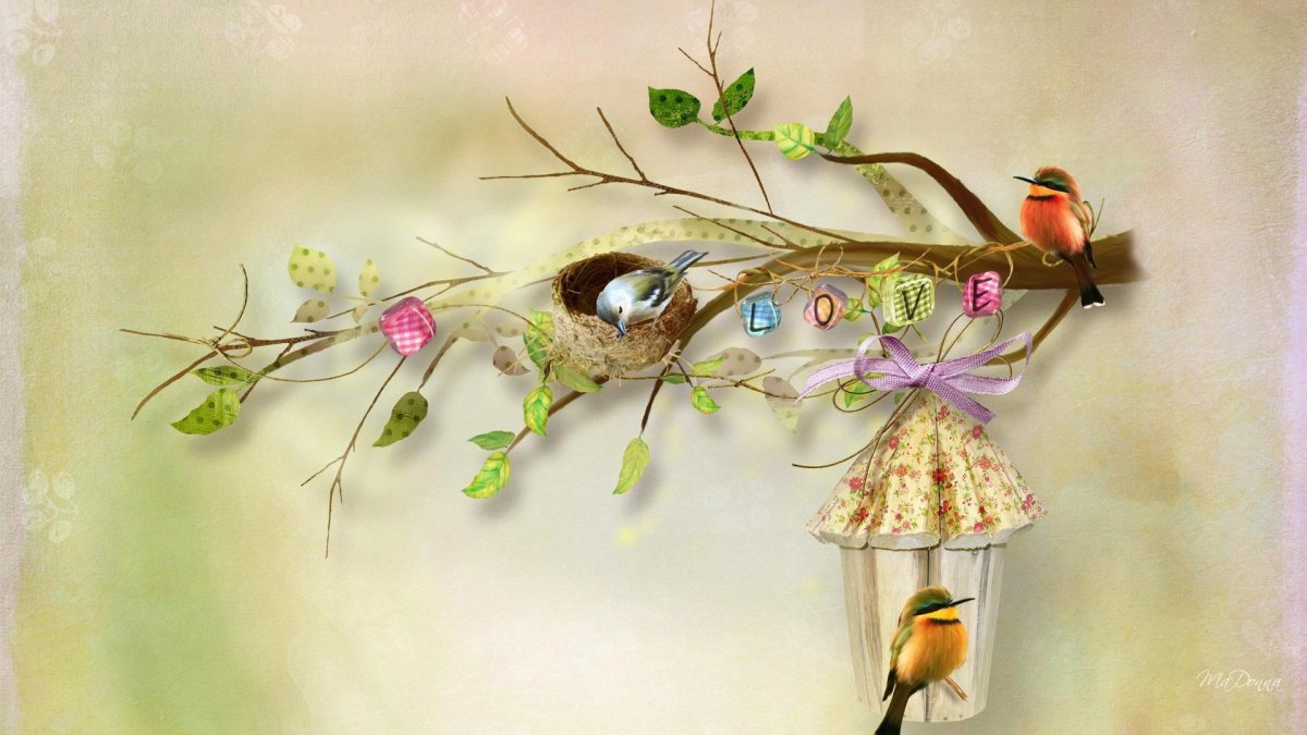 Весенний фон с птицами для фотошопа