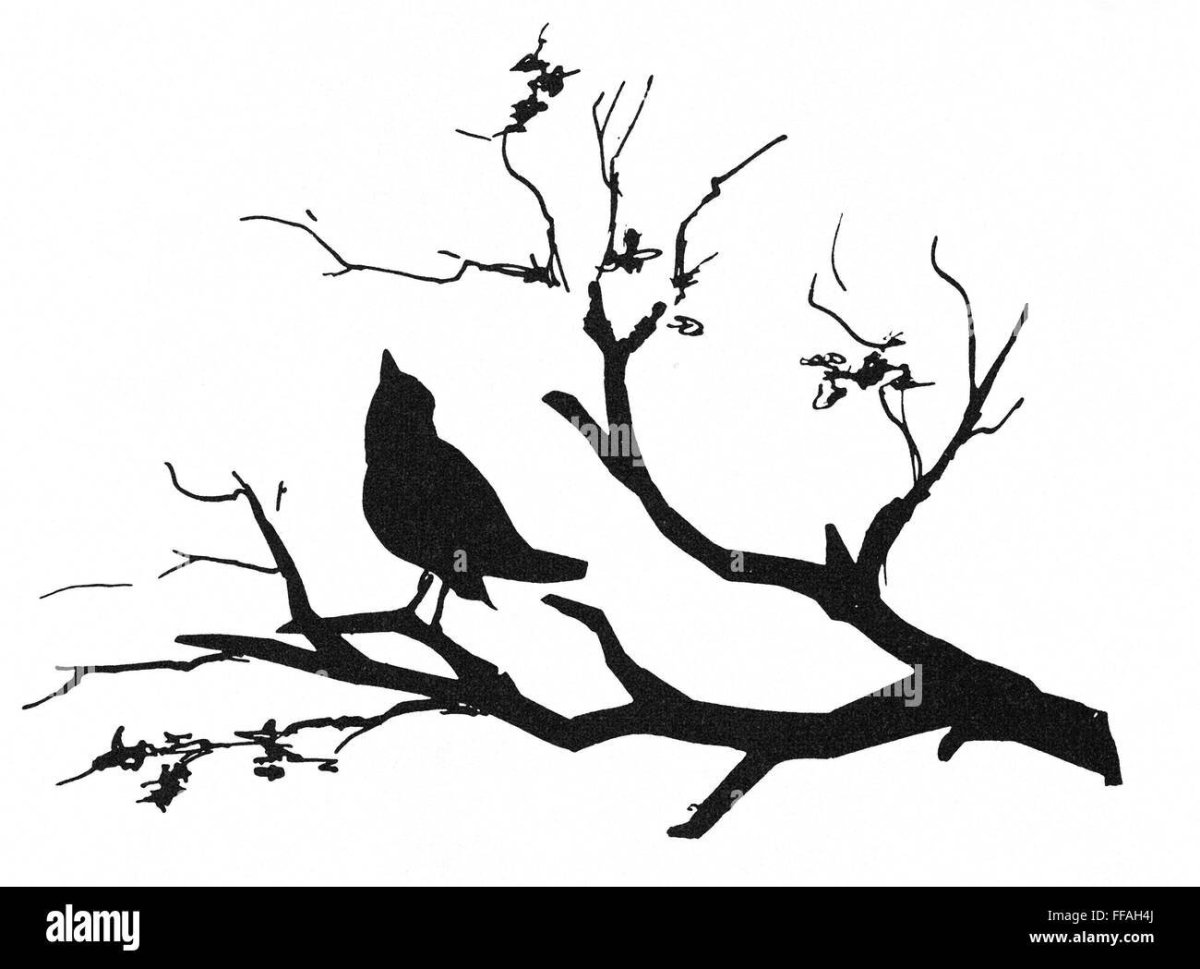Птичка на дереве рисунок
