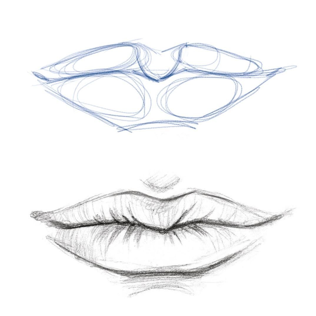 Скетчинг губ карандашом