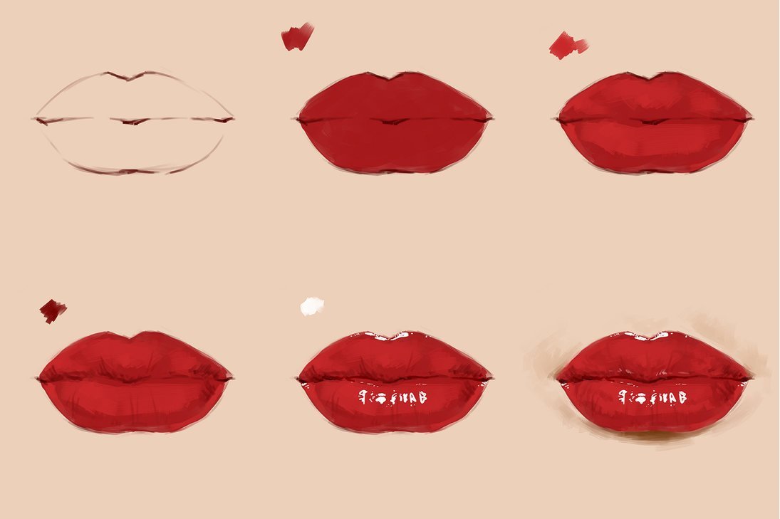 Поэтапное рисование губ
