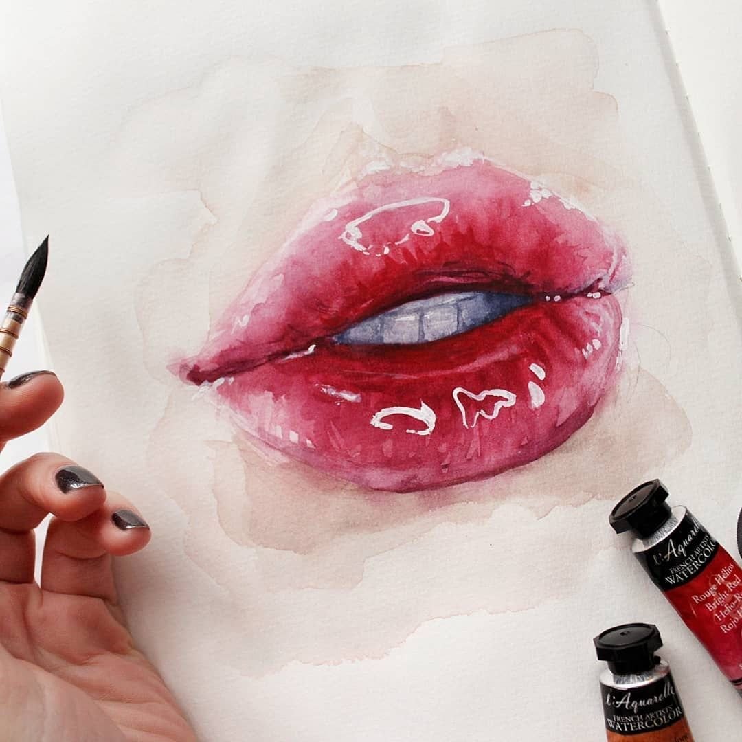 Губы акварелью