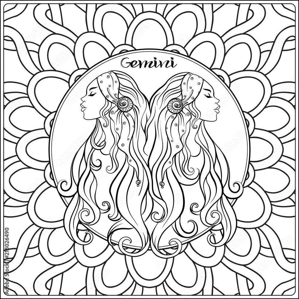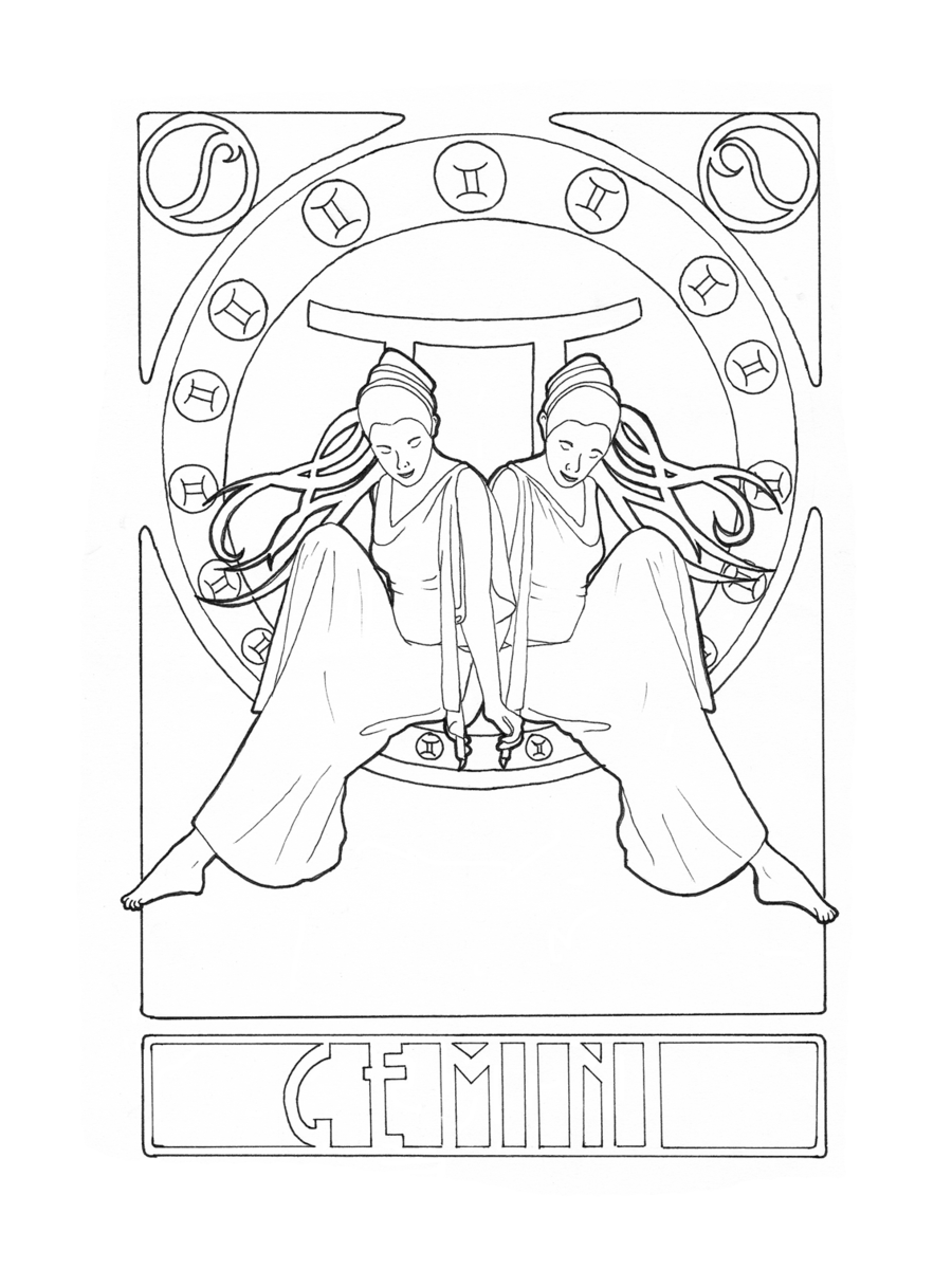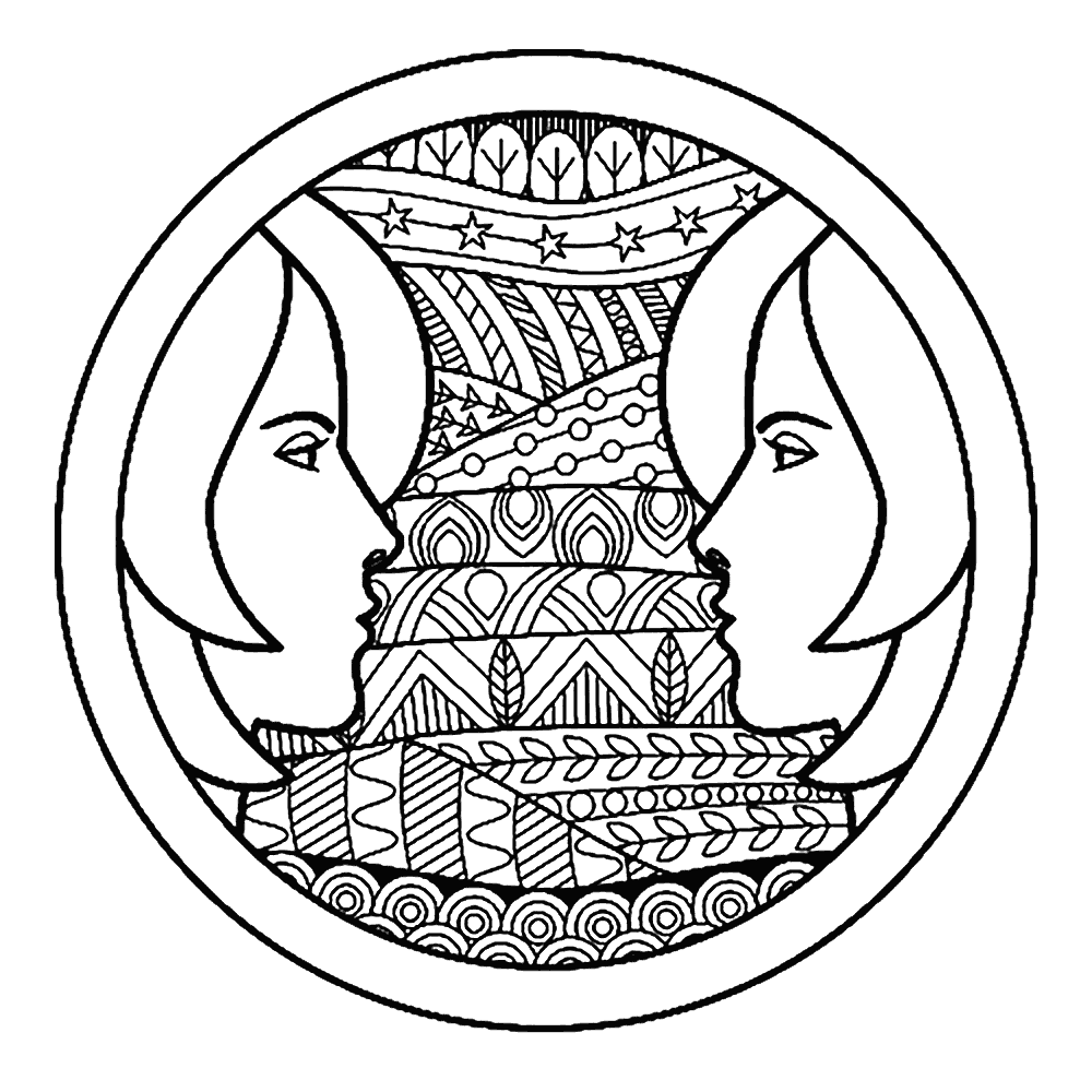 Раскраски антистресс знаки зодиака Близнецы