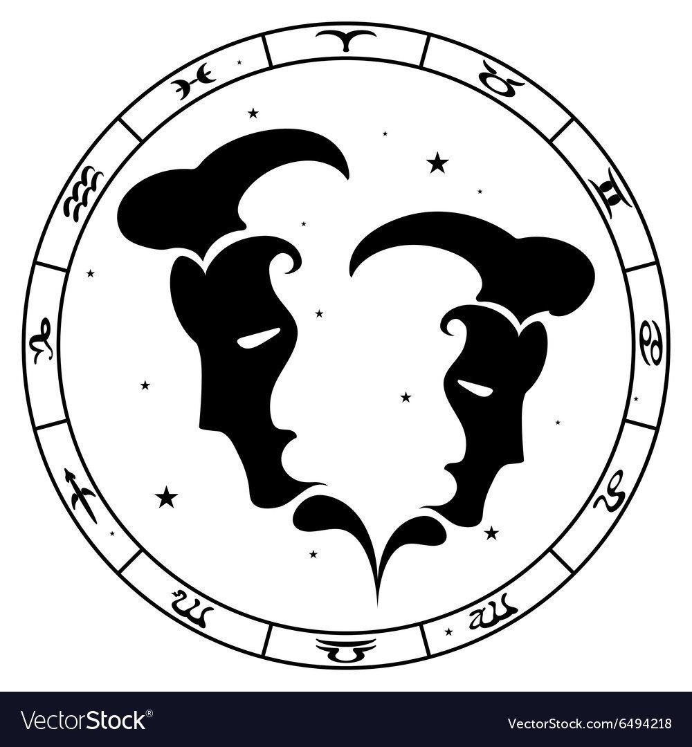 Близнецы знак зодиака вектор чб