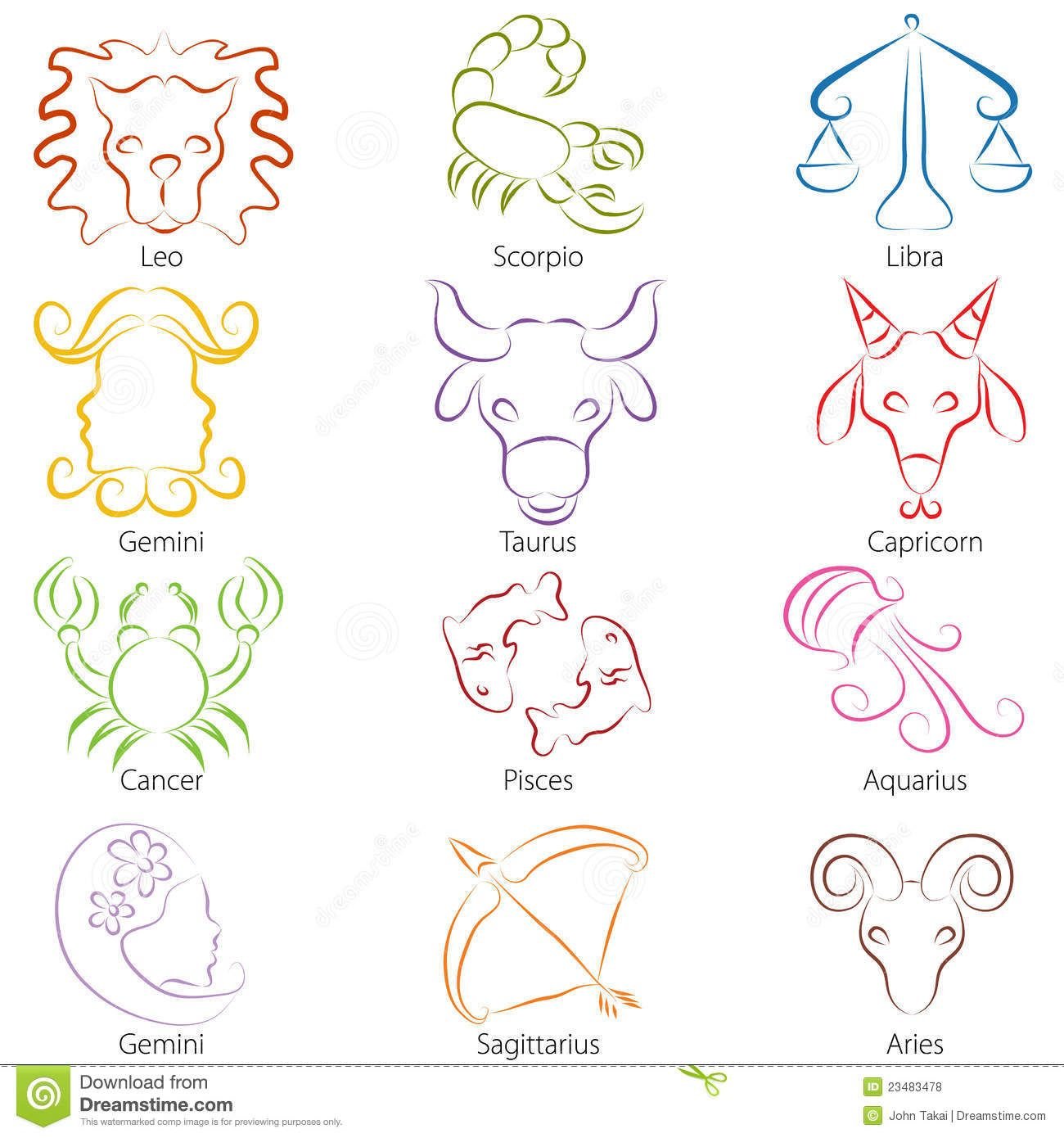 Контурные тату знаки зодиака
