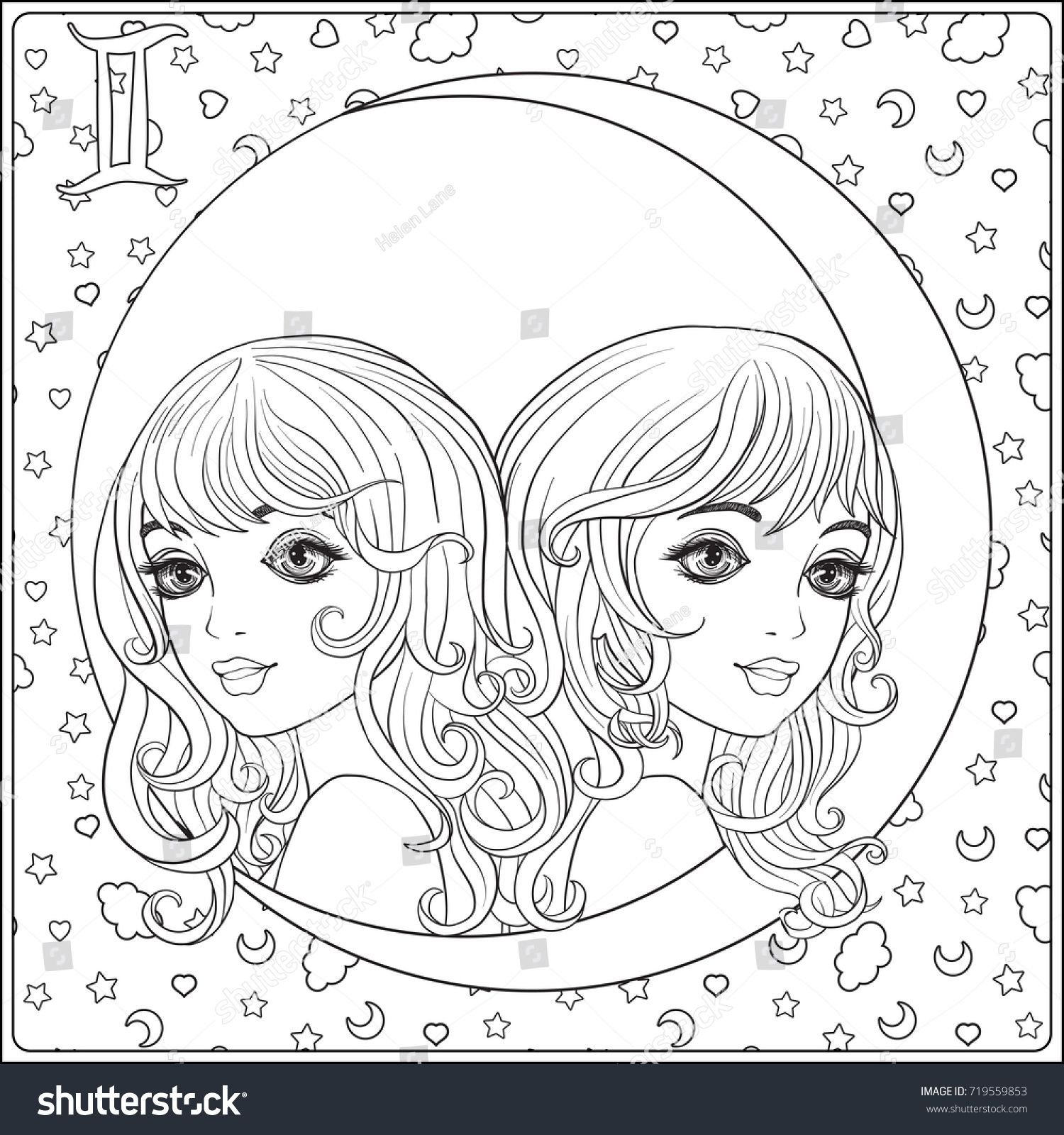 Раскраска Близнецы знак зодиака