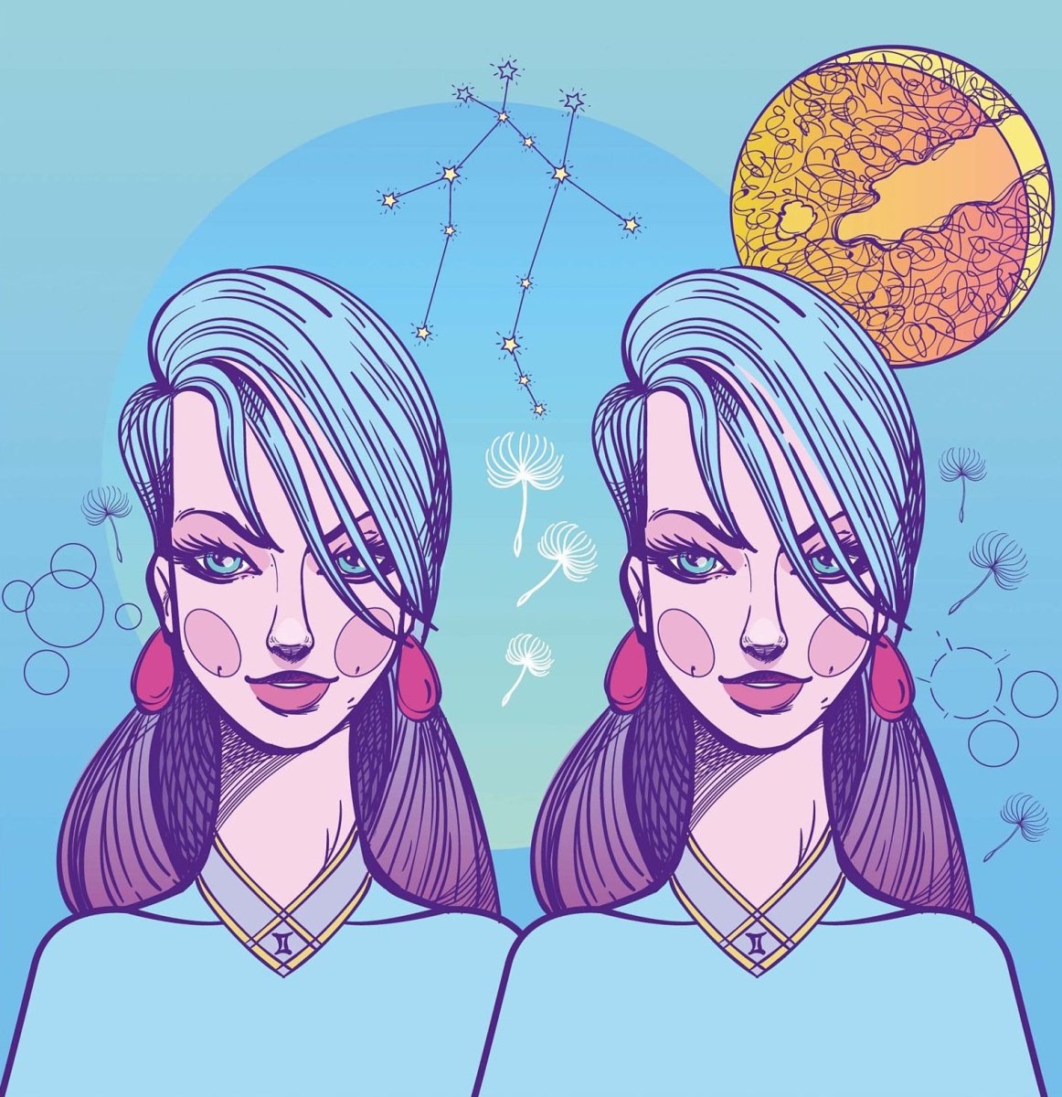 Рисунок знака зодиака Близнецы в виде девушки