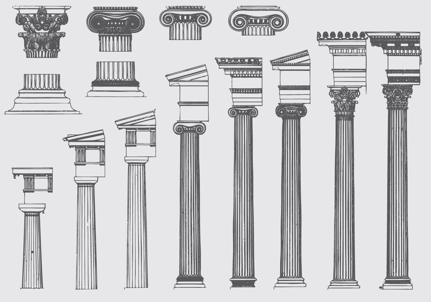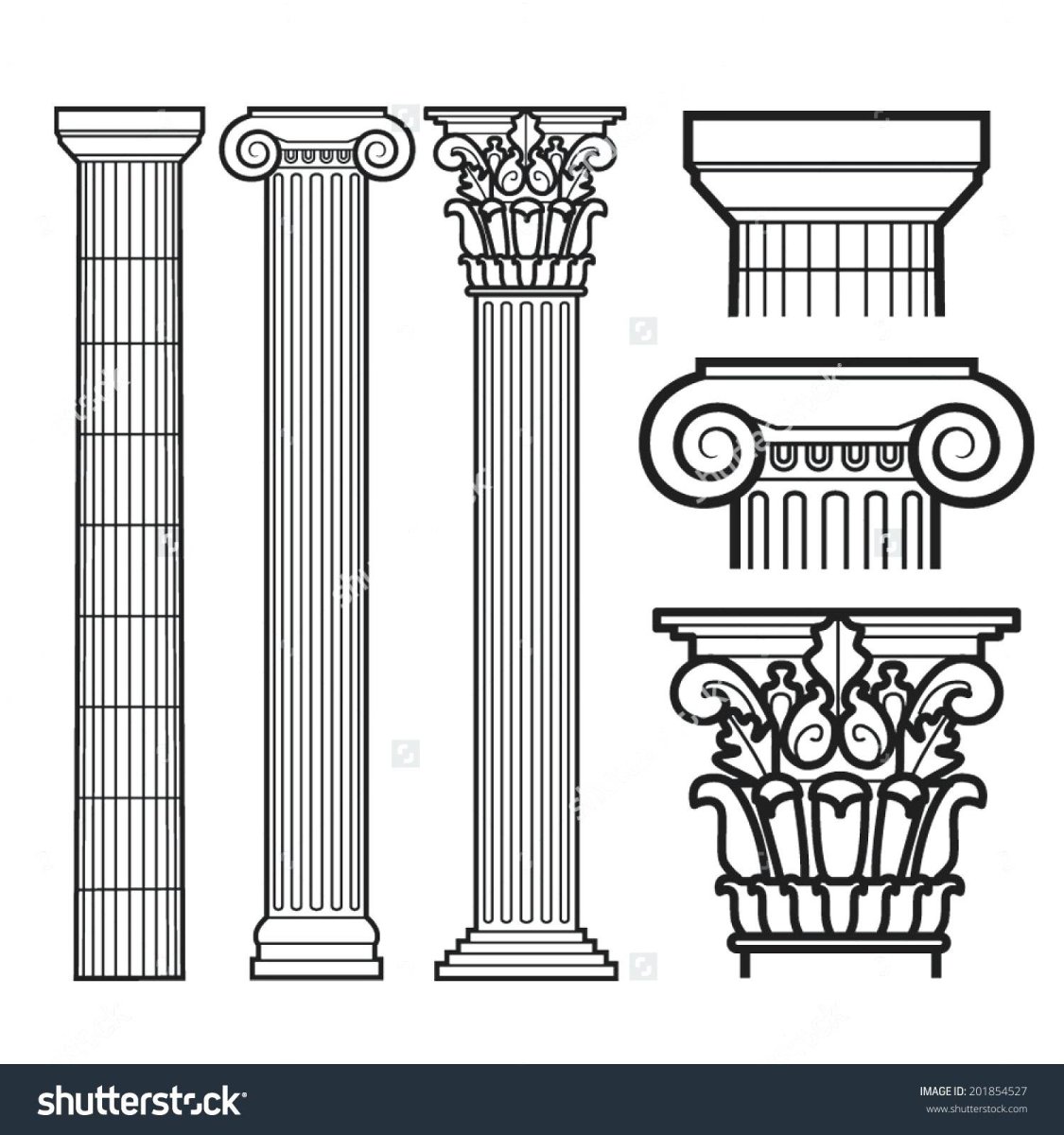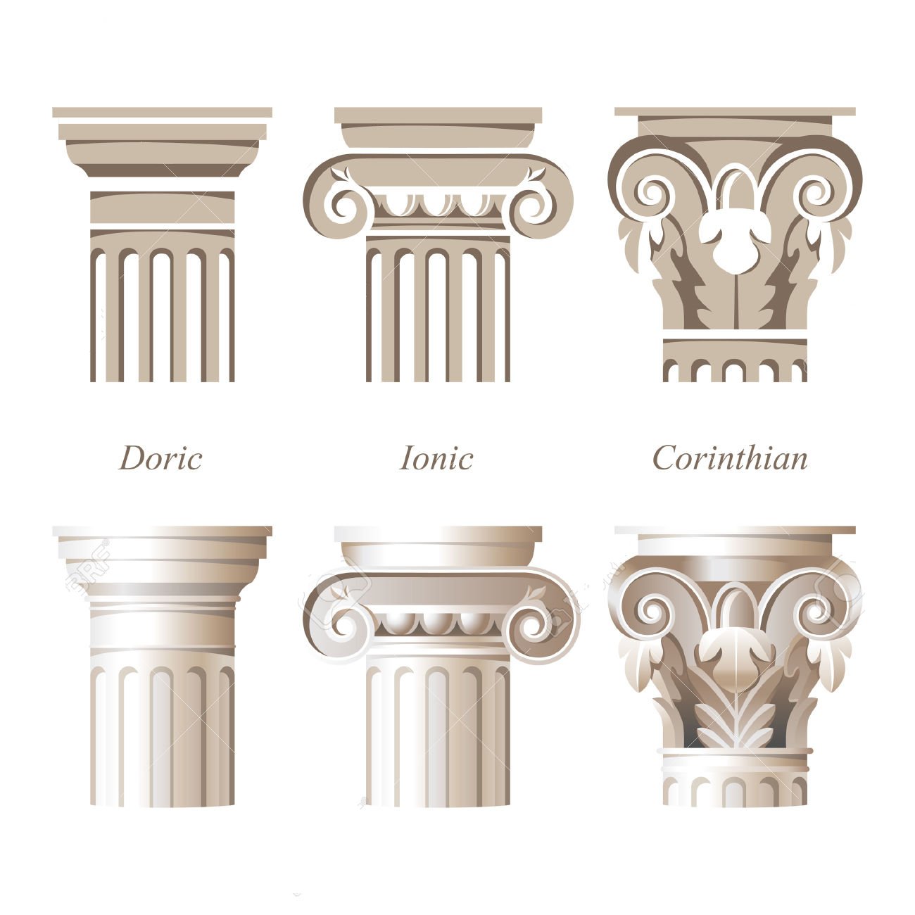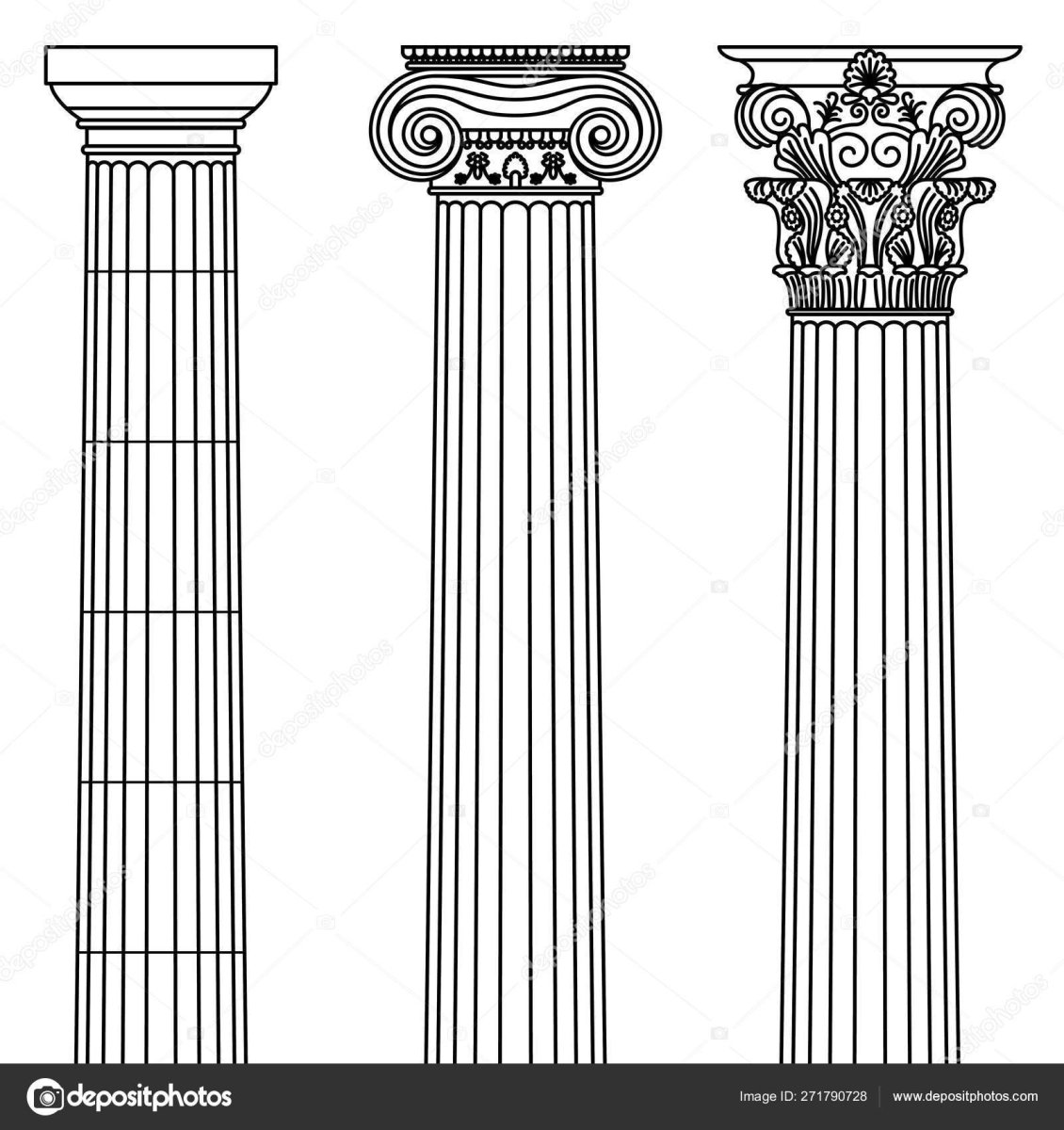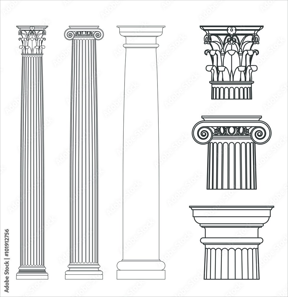 Дорический ионический и Коринфский ордера вектор