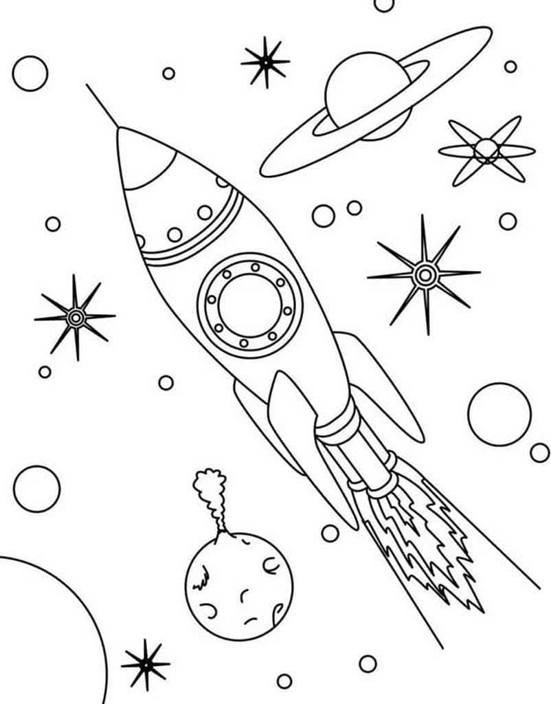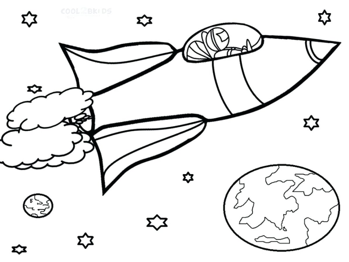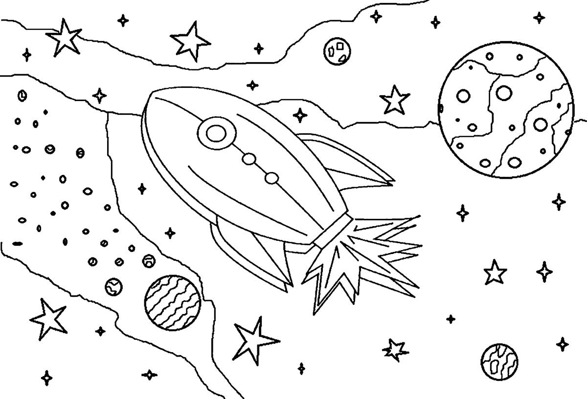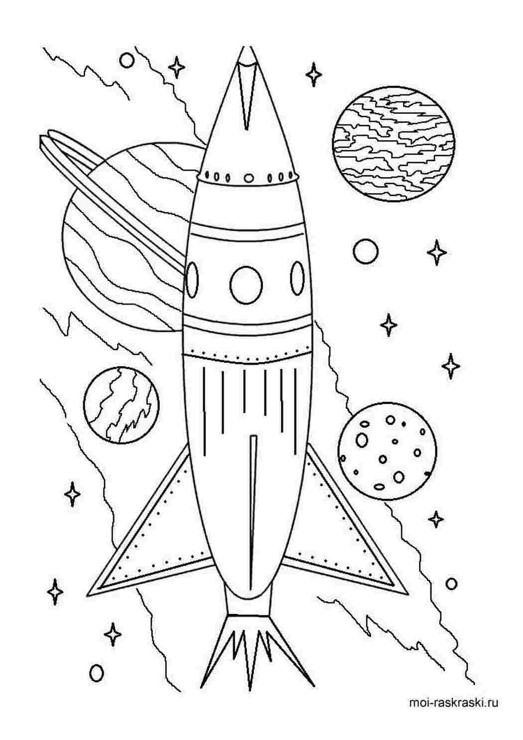 Раскраска ракеты в космосе для детей