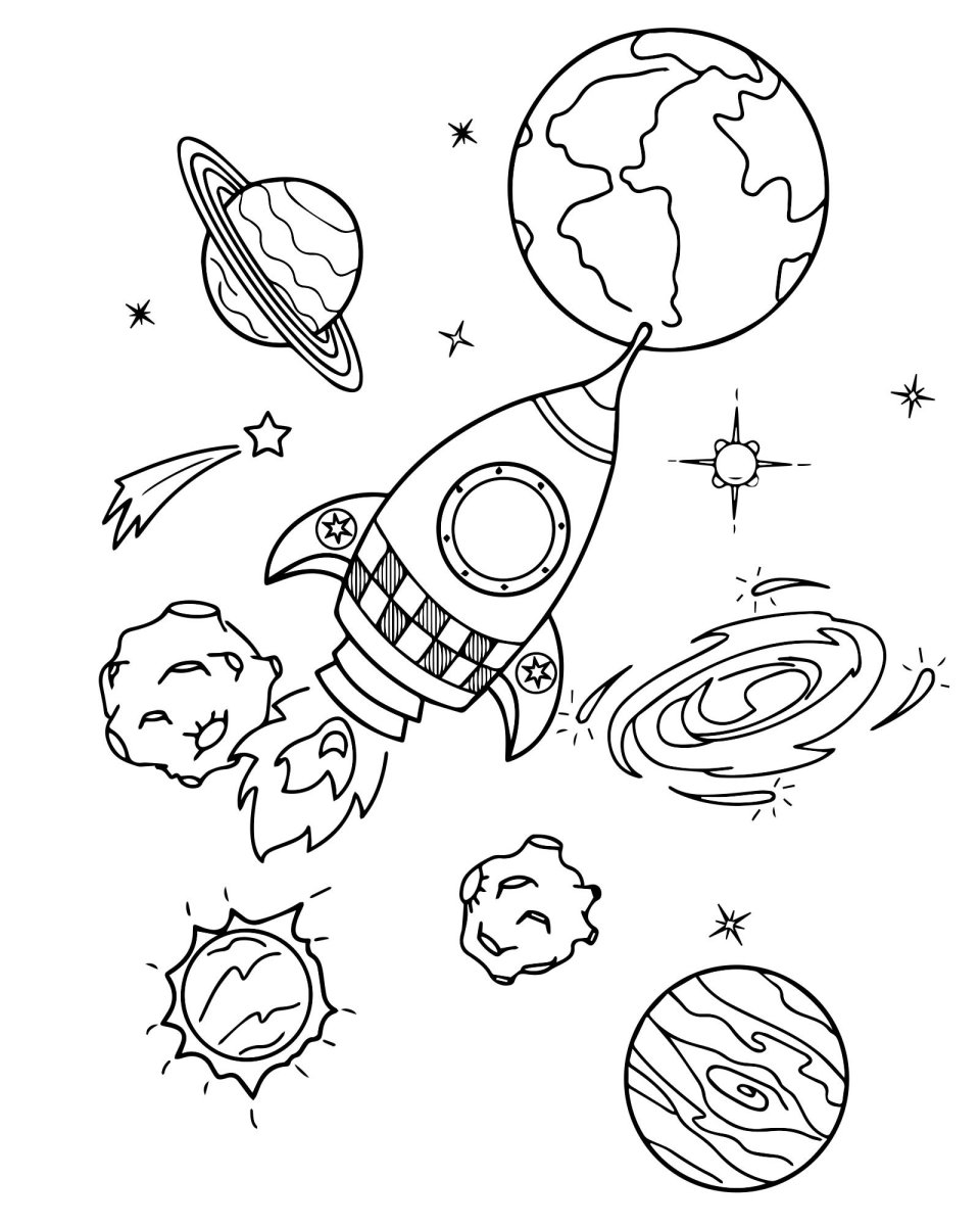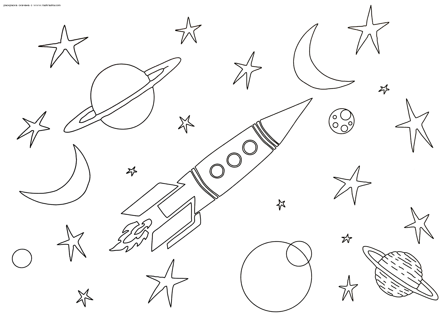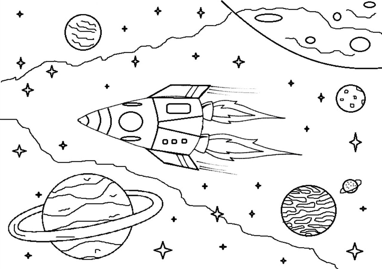 Раскраска ракеты в космосе для детей