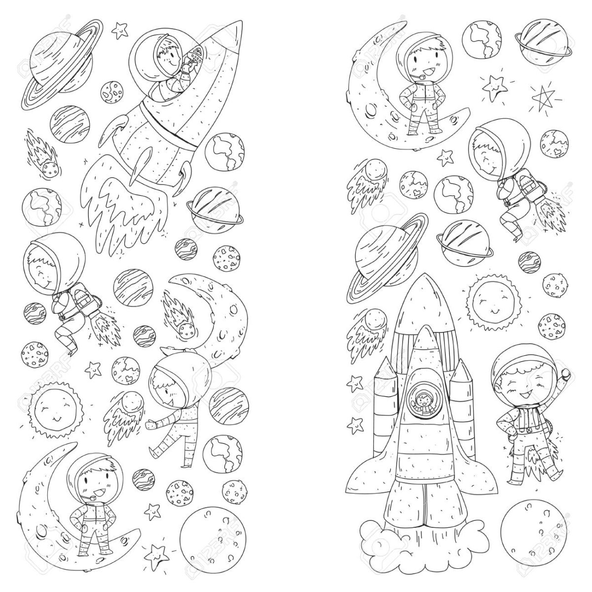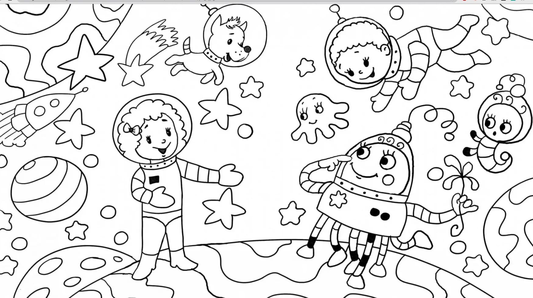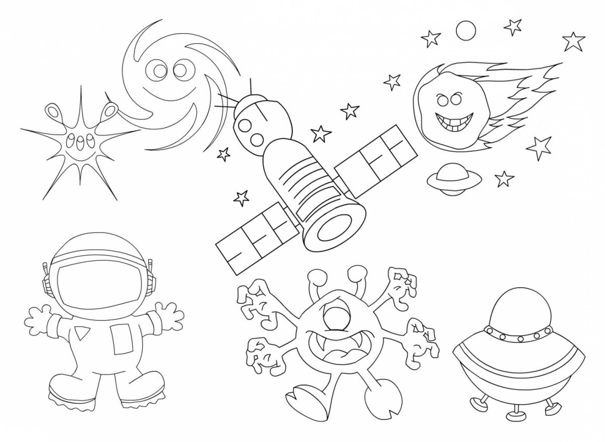 Раскраска космос на одной странице
