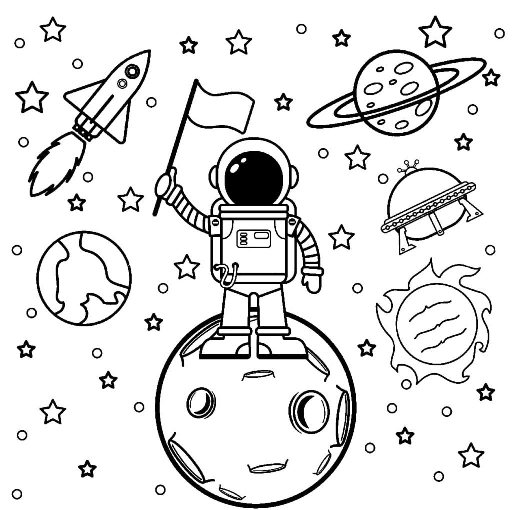 Раскраска космонавт и планеты для детей