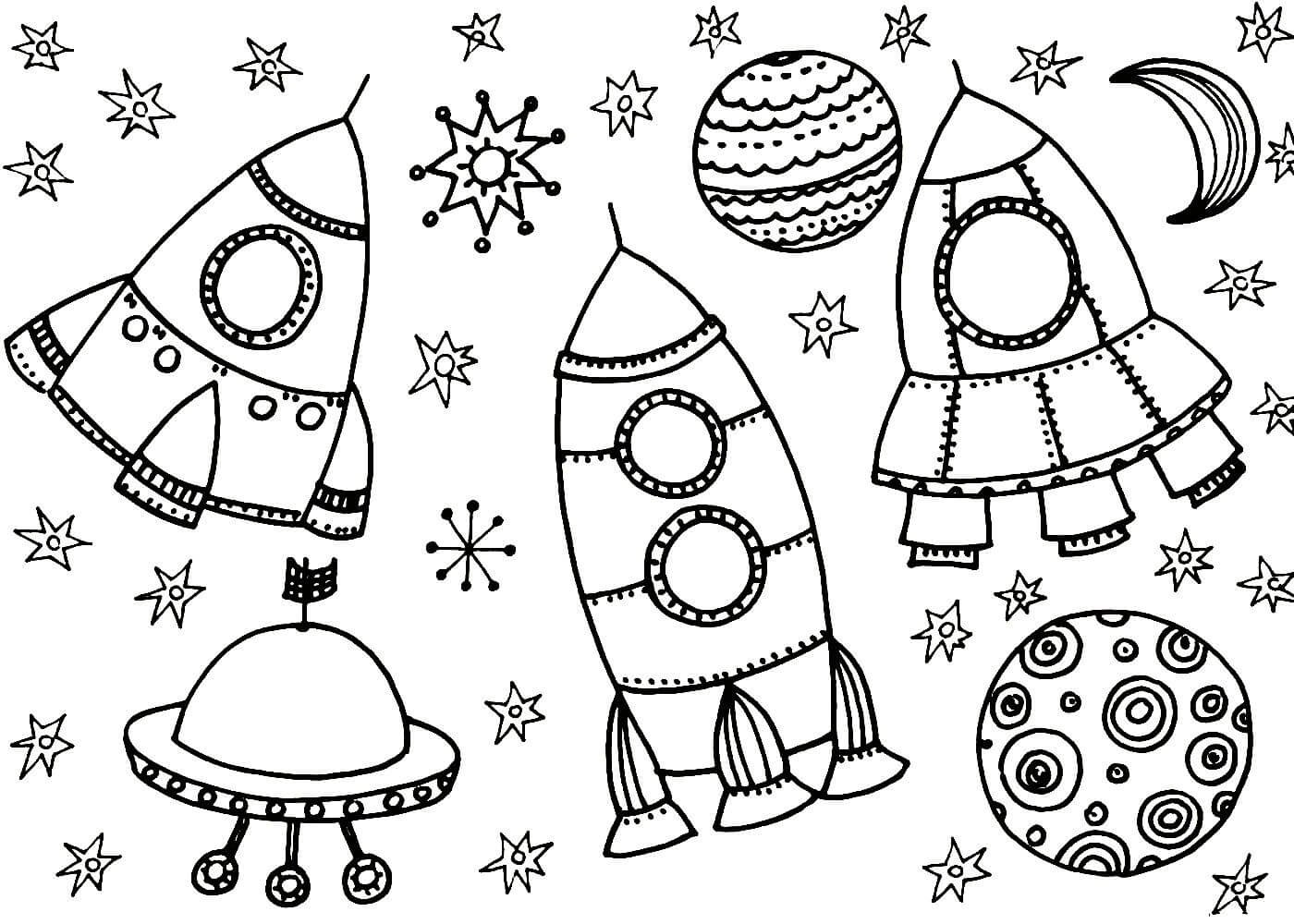 Ракеты и спутники раскраска