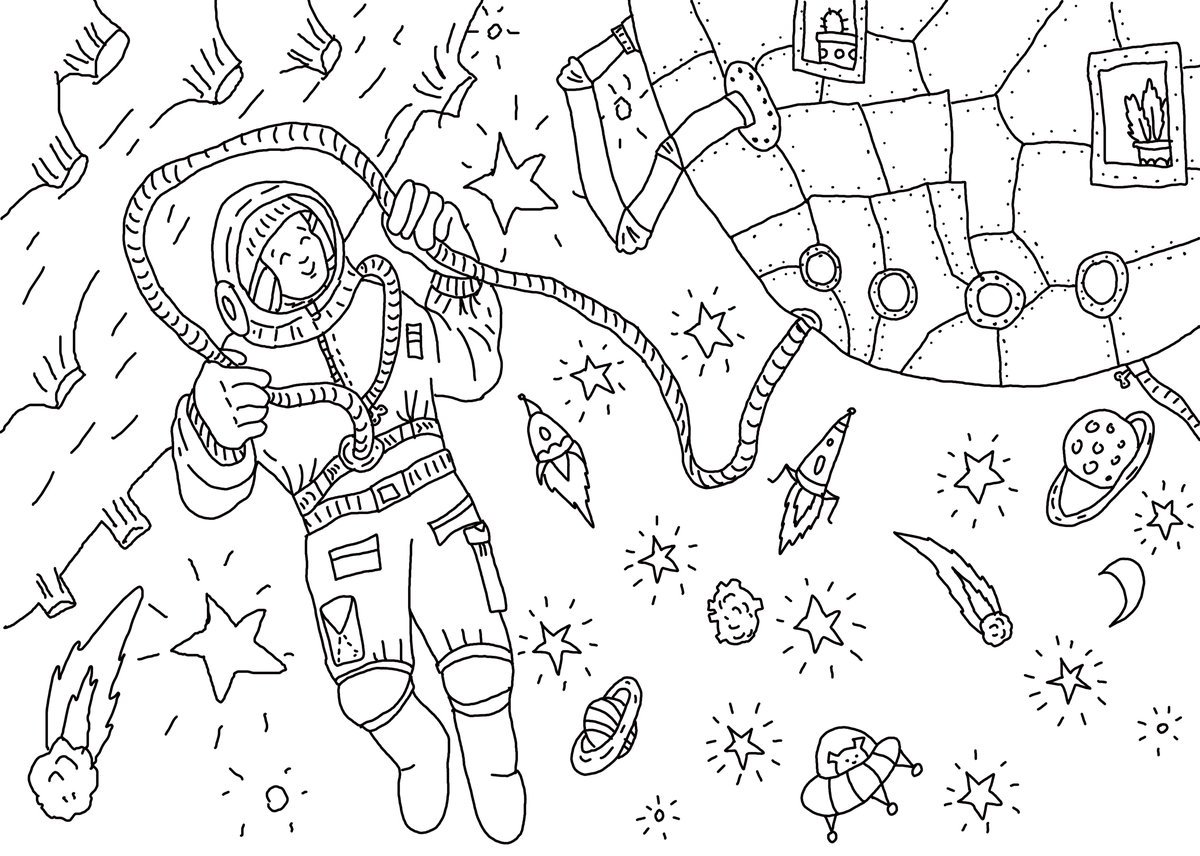 Женщина в космосе раскраска