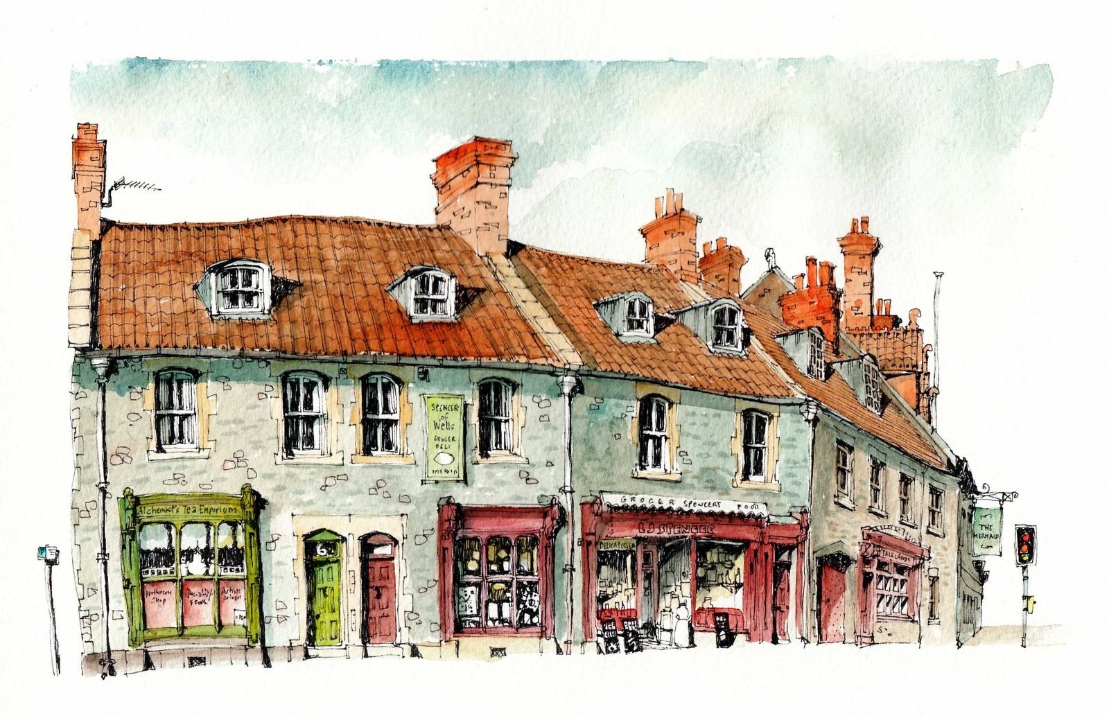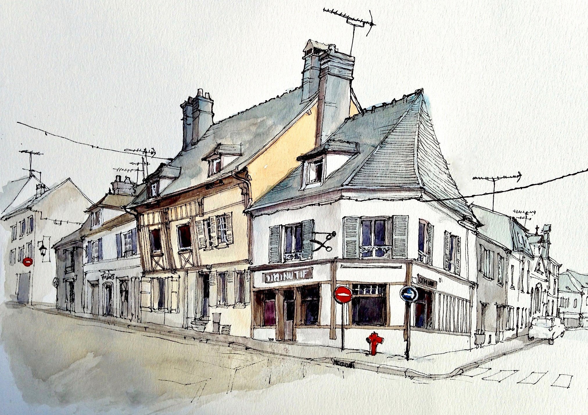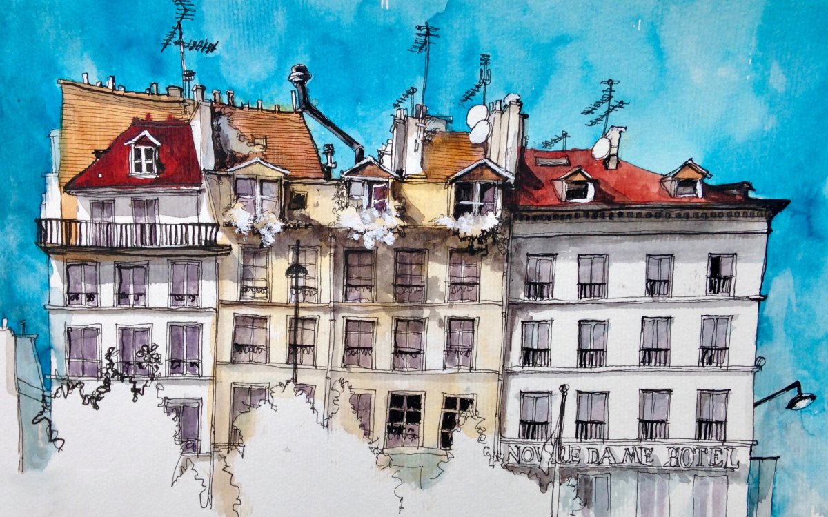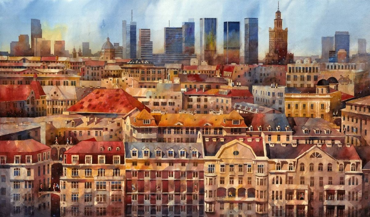 Крыши домов акварелью