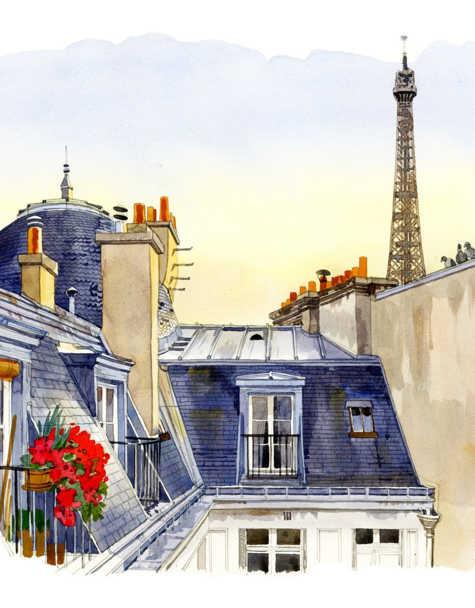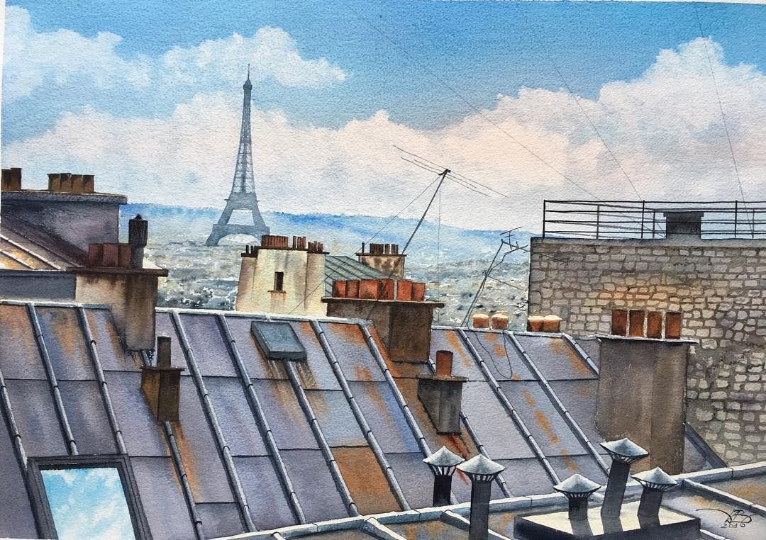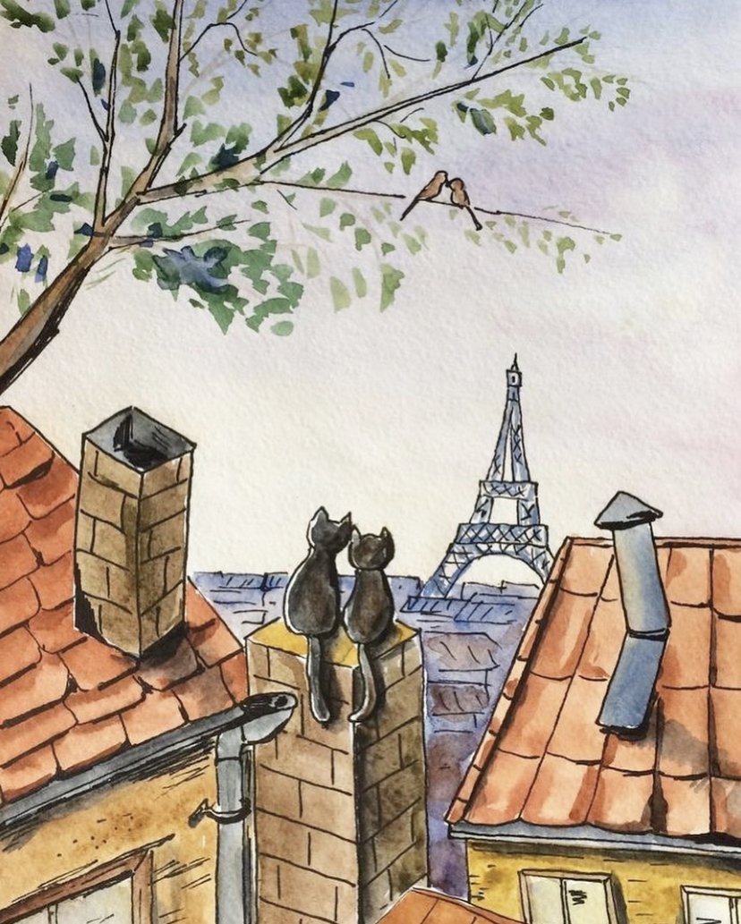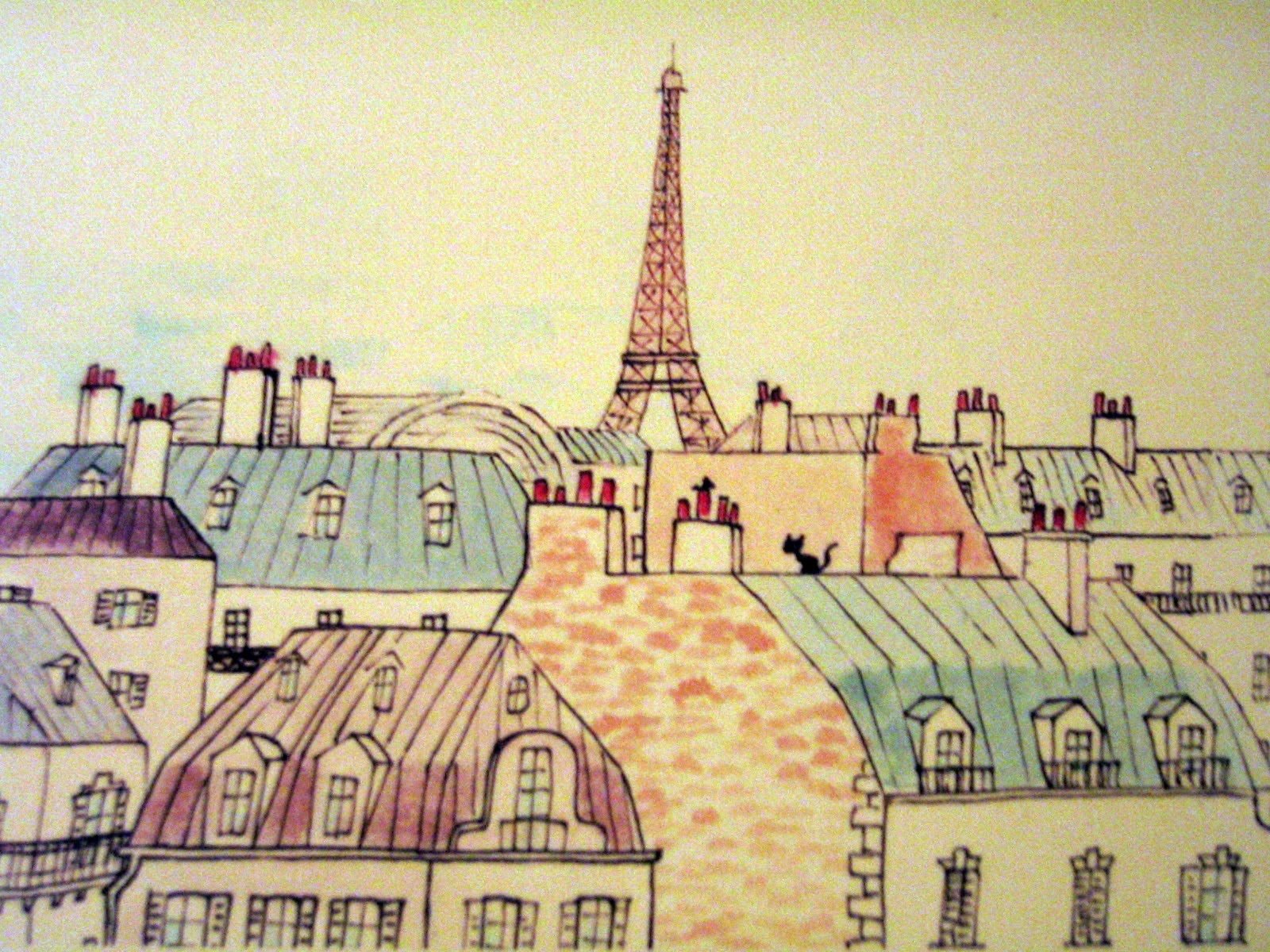 Эйфелева башня скетч акварель