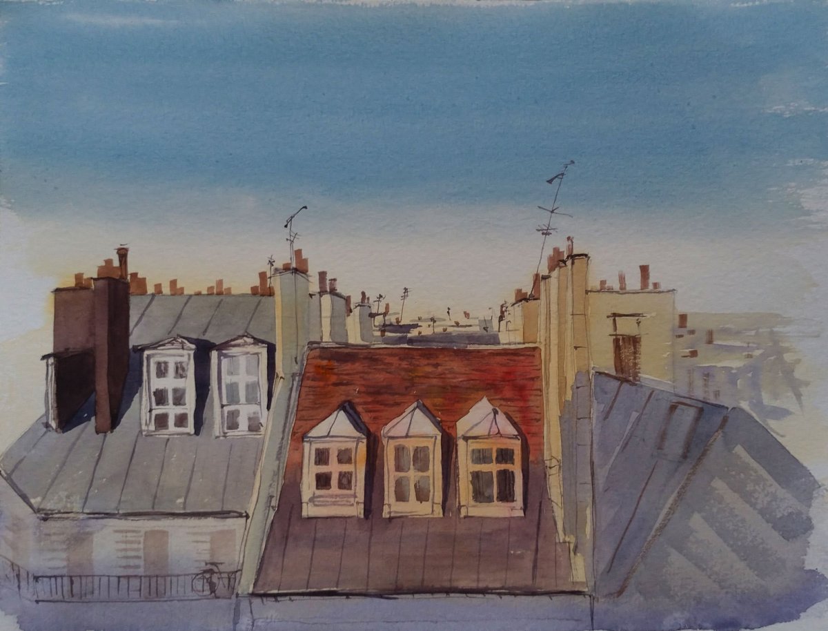 Крыши акварель