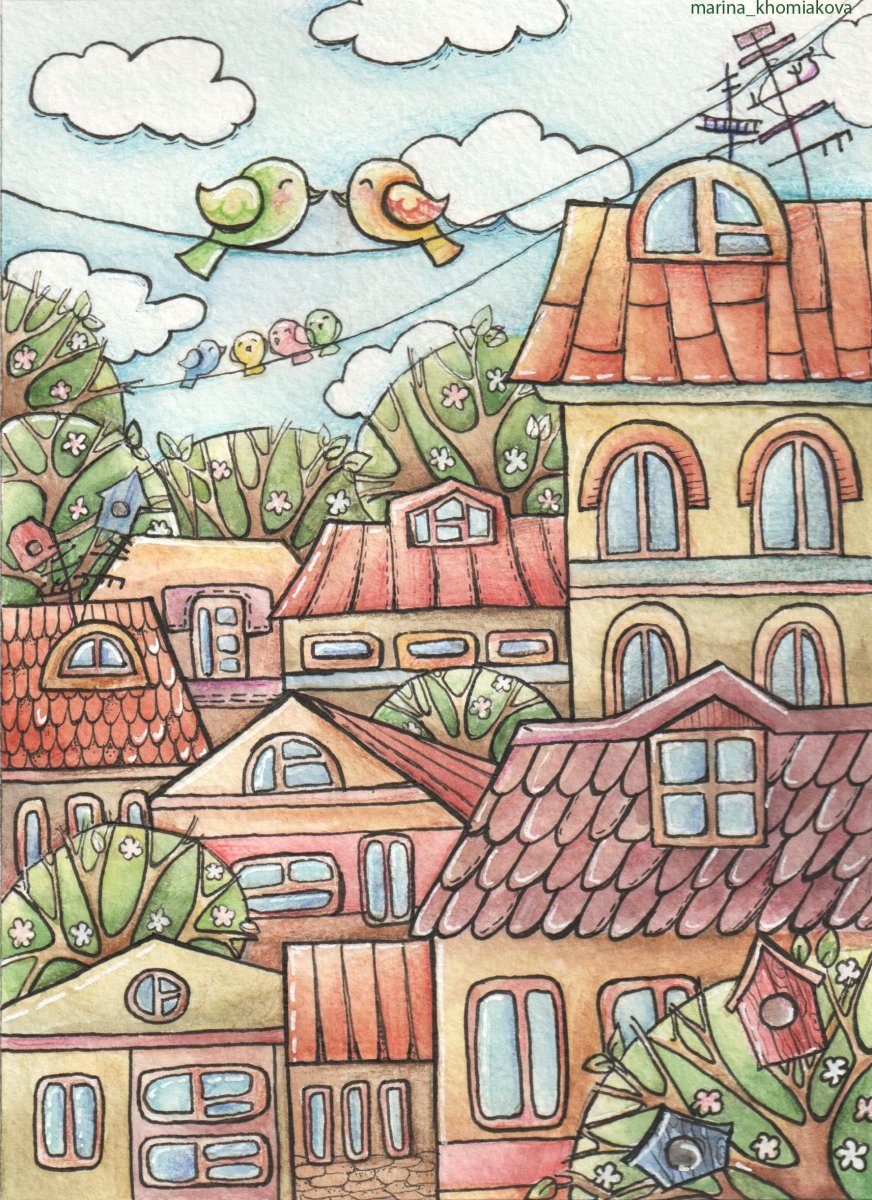 Рисунки домов акварелью