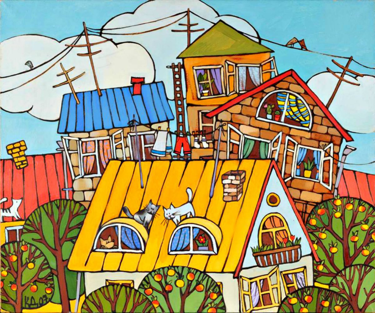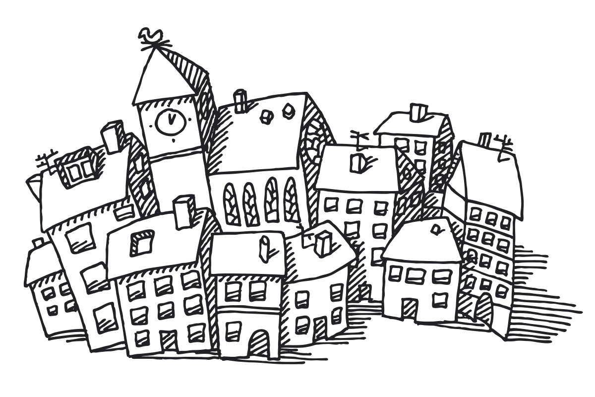 Нарисованные крыши домов