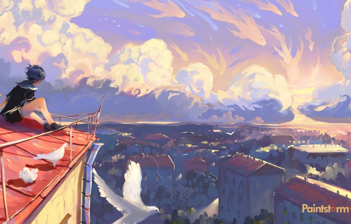 Крыша дома аниме