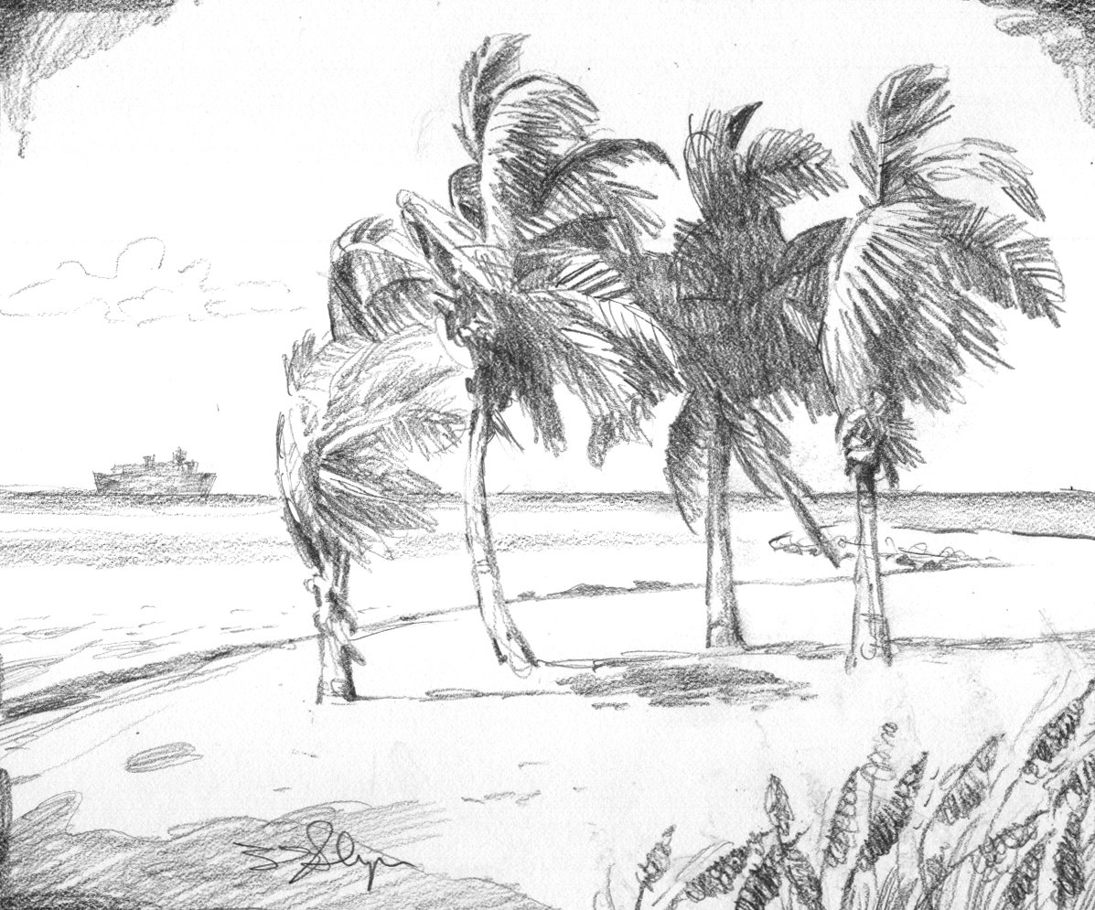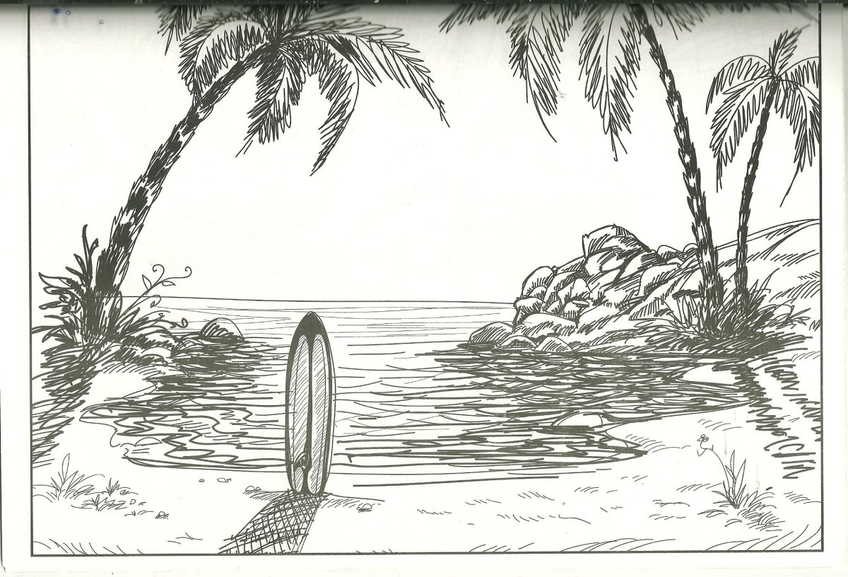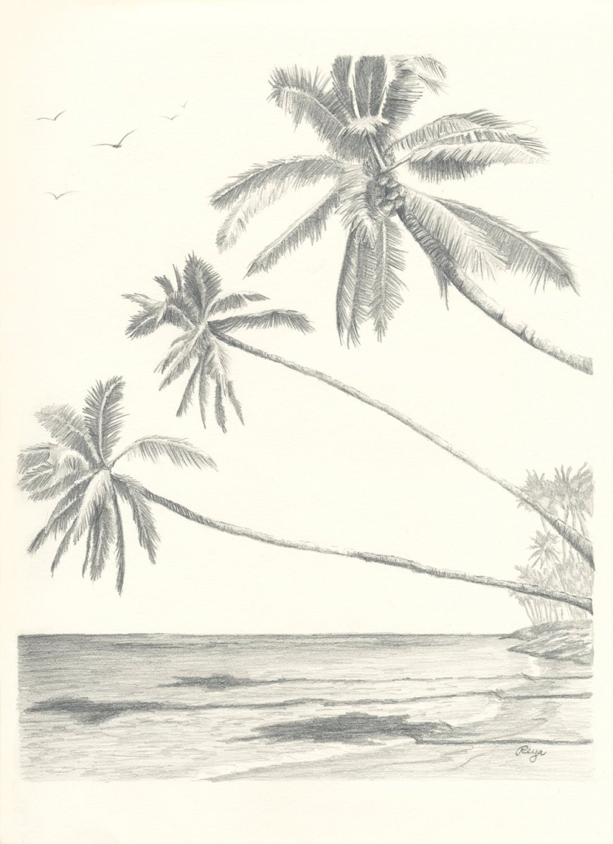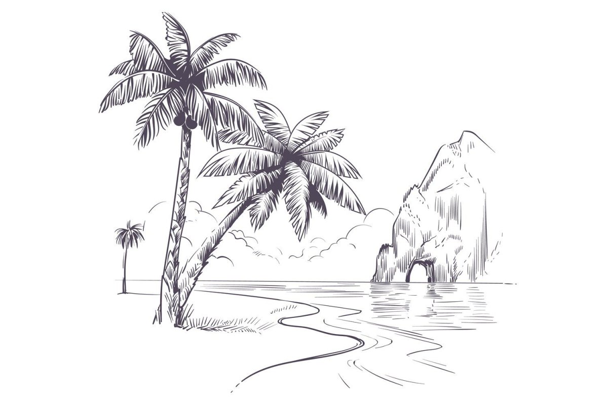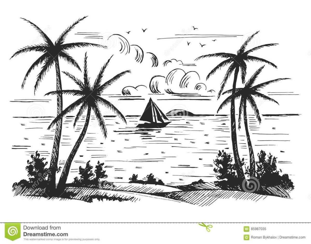 Пальма и море рисунок карандашом