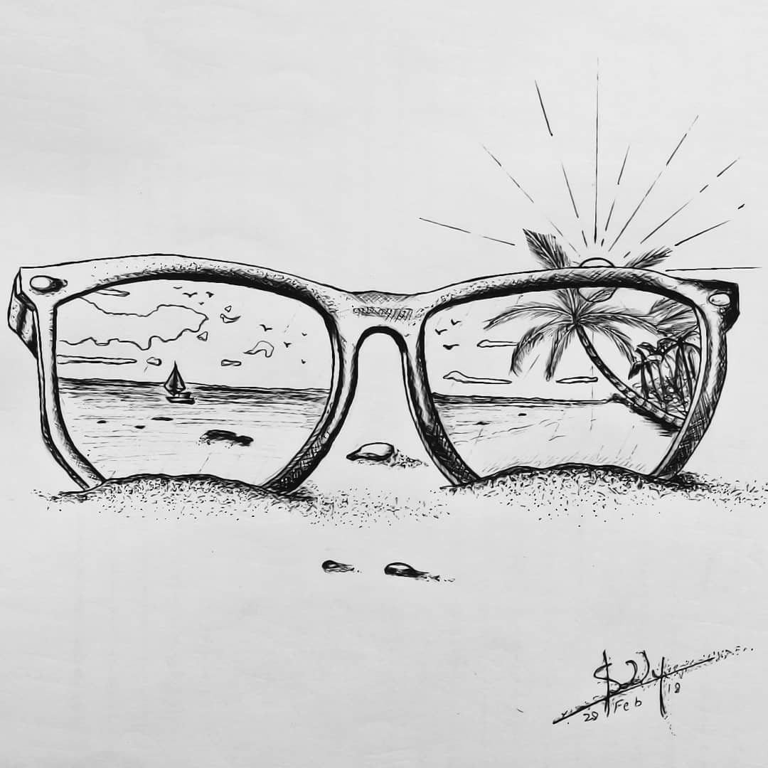 Рисунок пляж и море карандашом