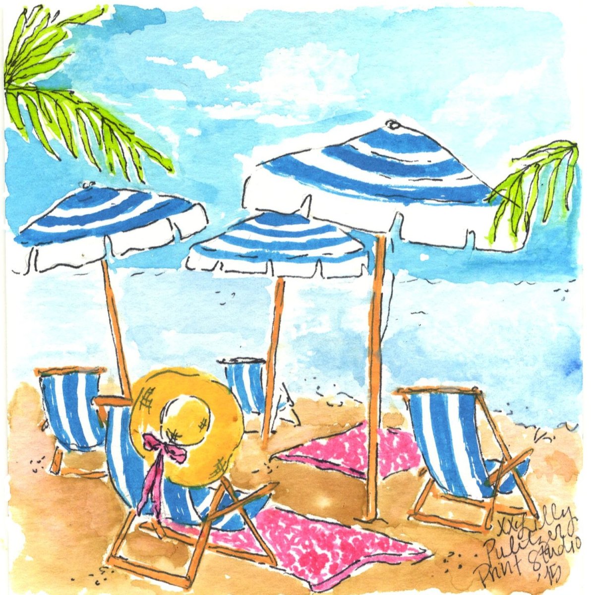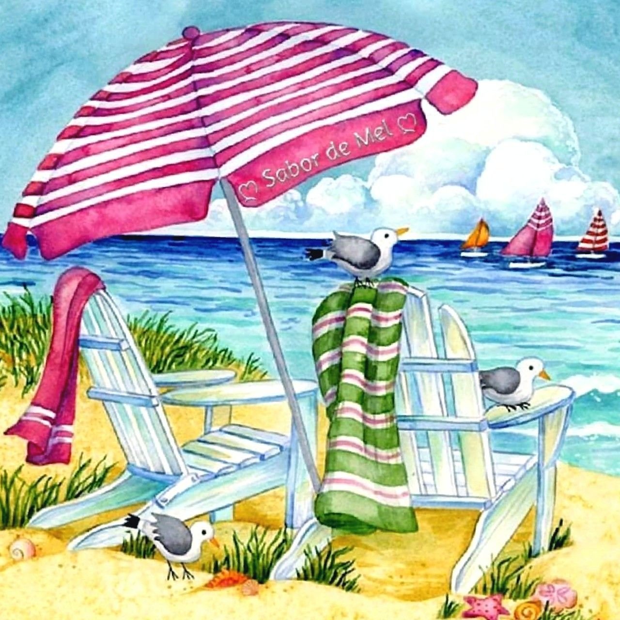 Пляжный зонтик акварель