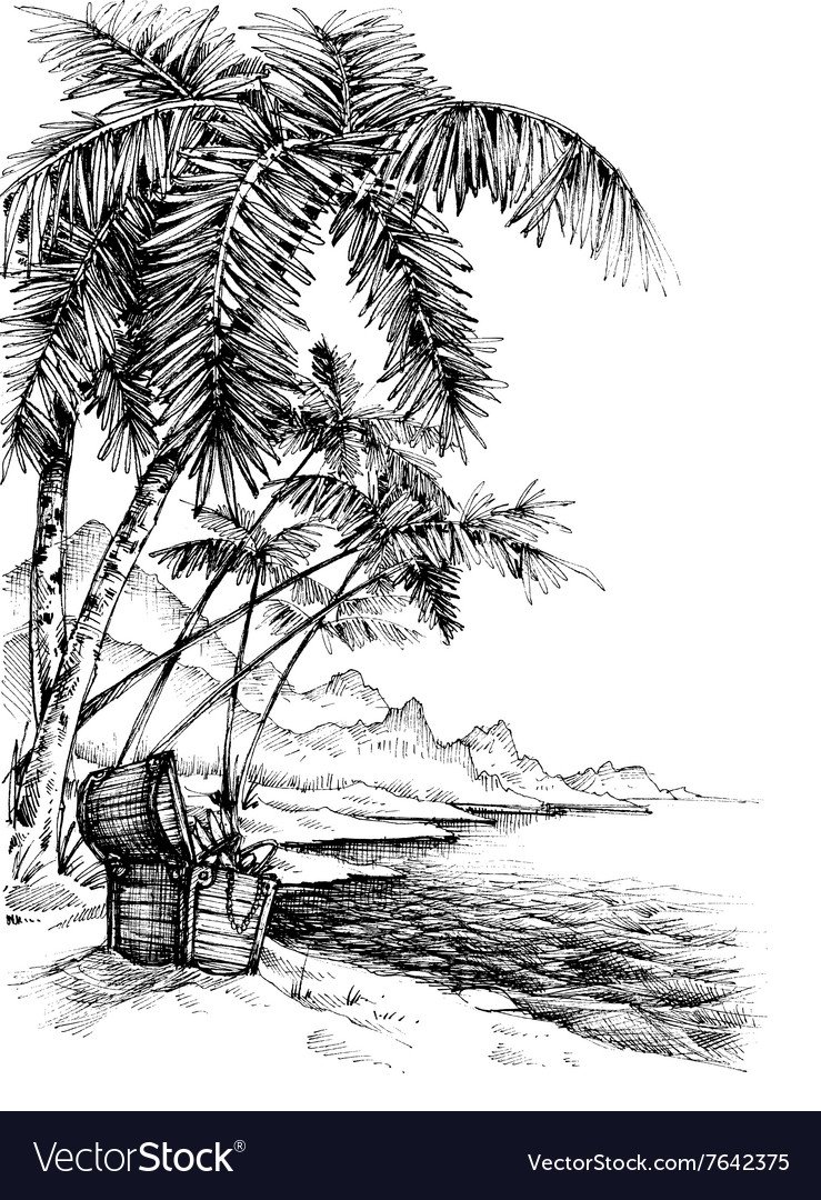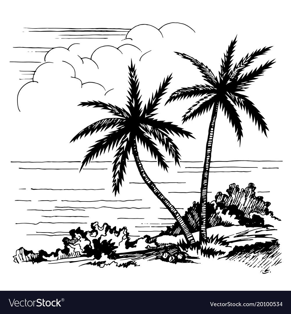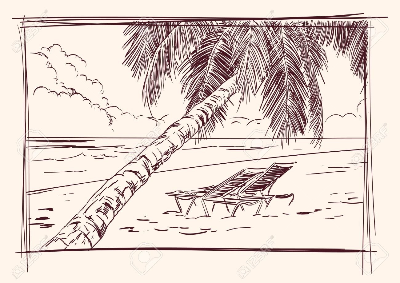 Пляж с пальмами скетчи