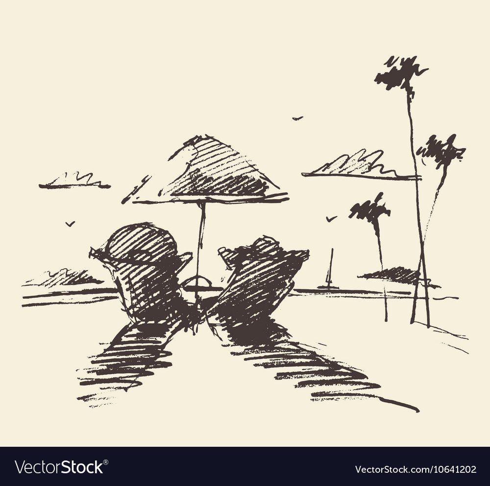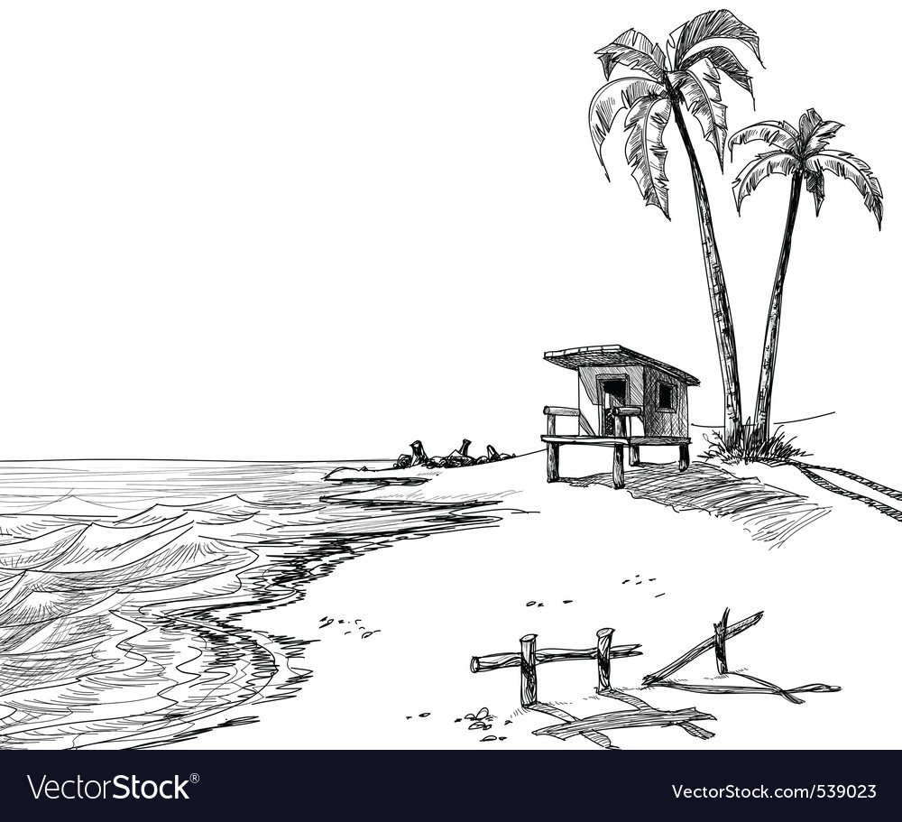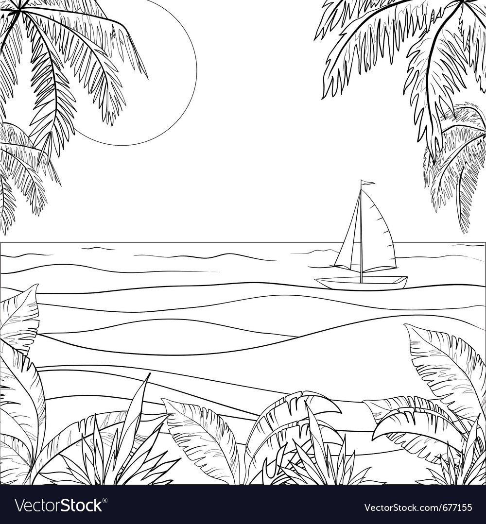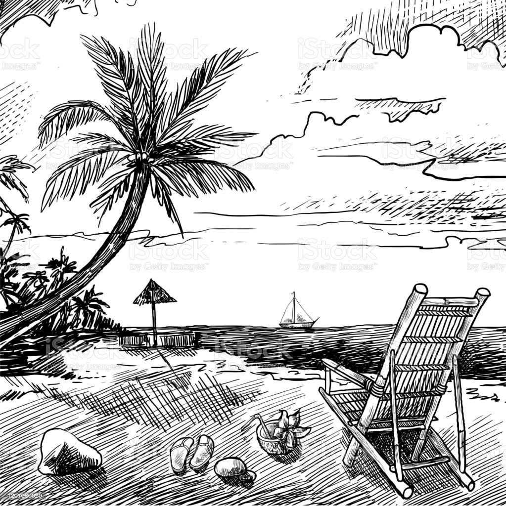 Пляж с пальмами скетчи