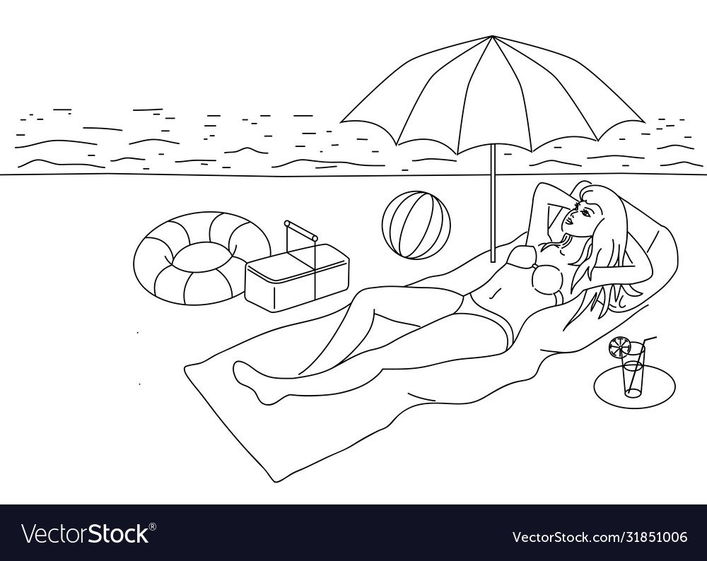 Линейная иллюстрация пляж