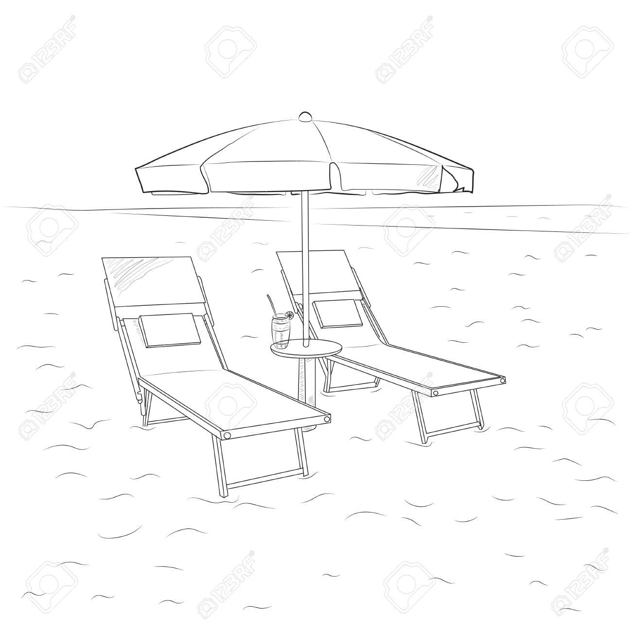 Скетч лежаки на пляже