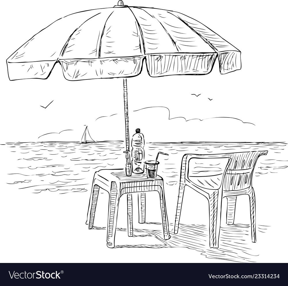 Пляж рисунок карандашом для детей