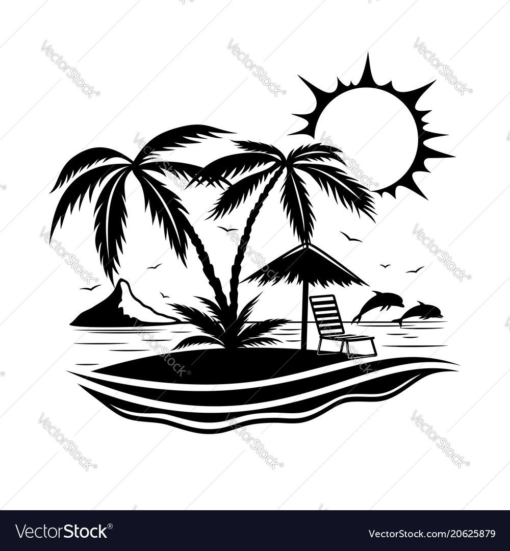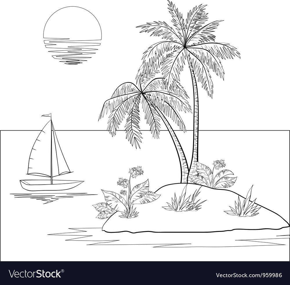 Эскиз тропических пальм на острове