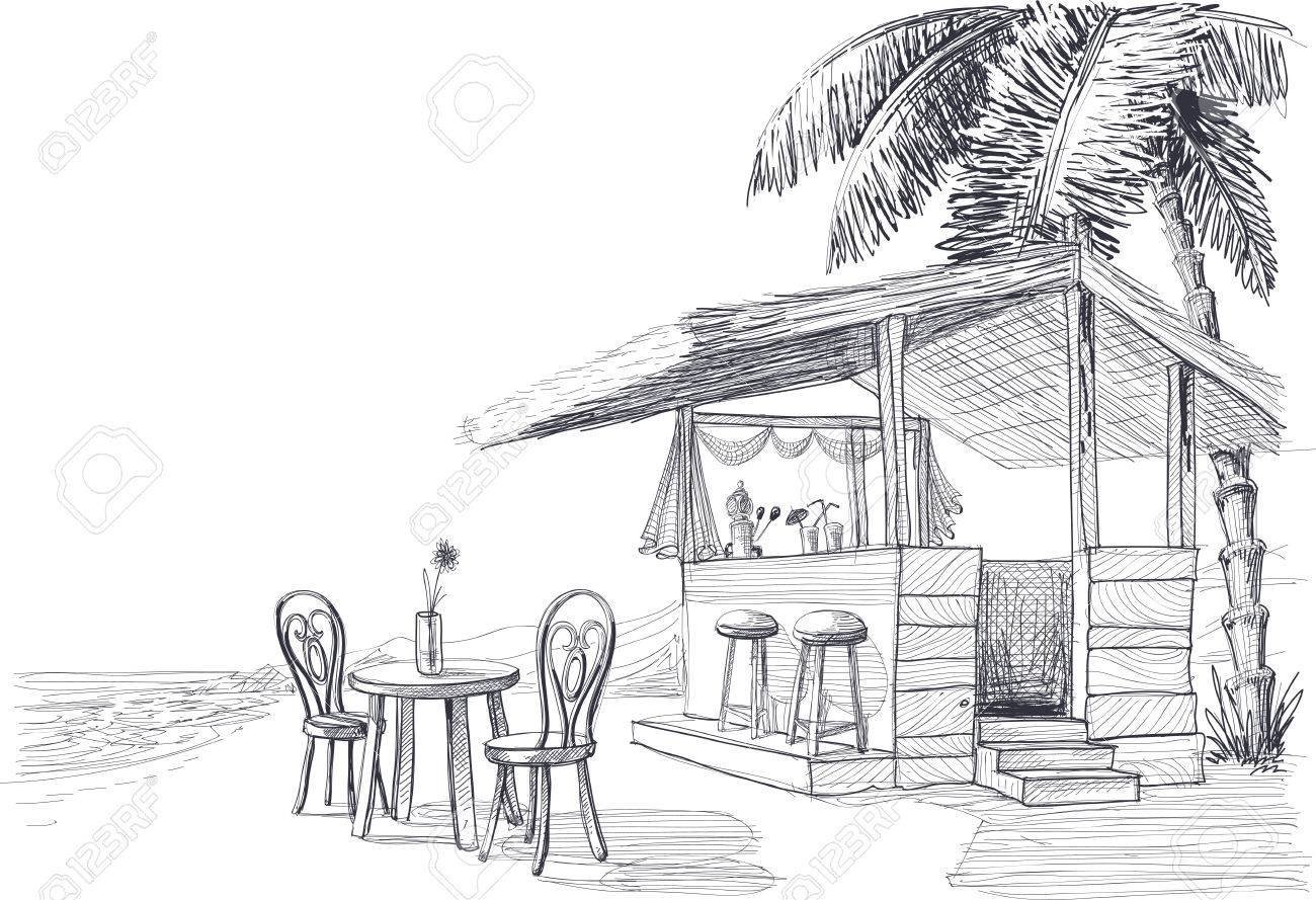 Дом на пляже рисунок карандашом