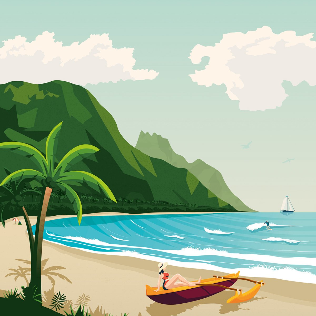 Графический пейзаж с пальмой