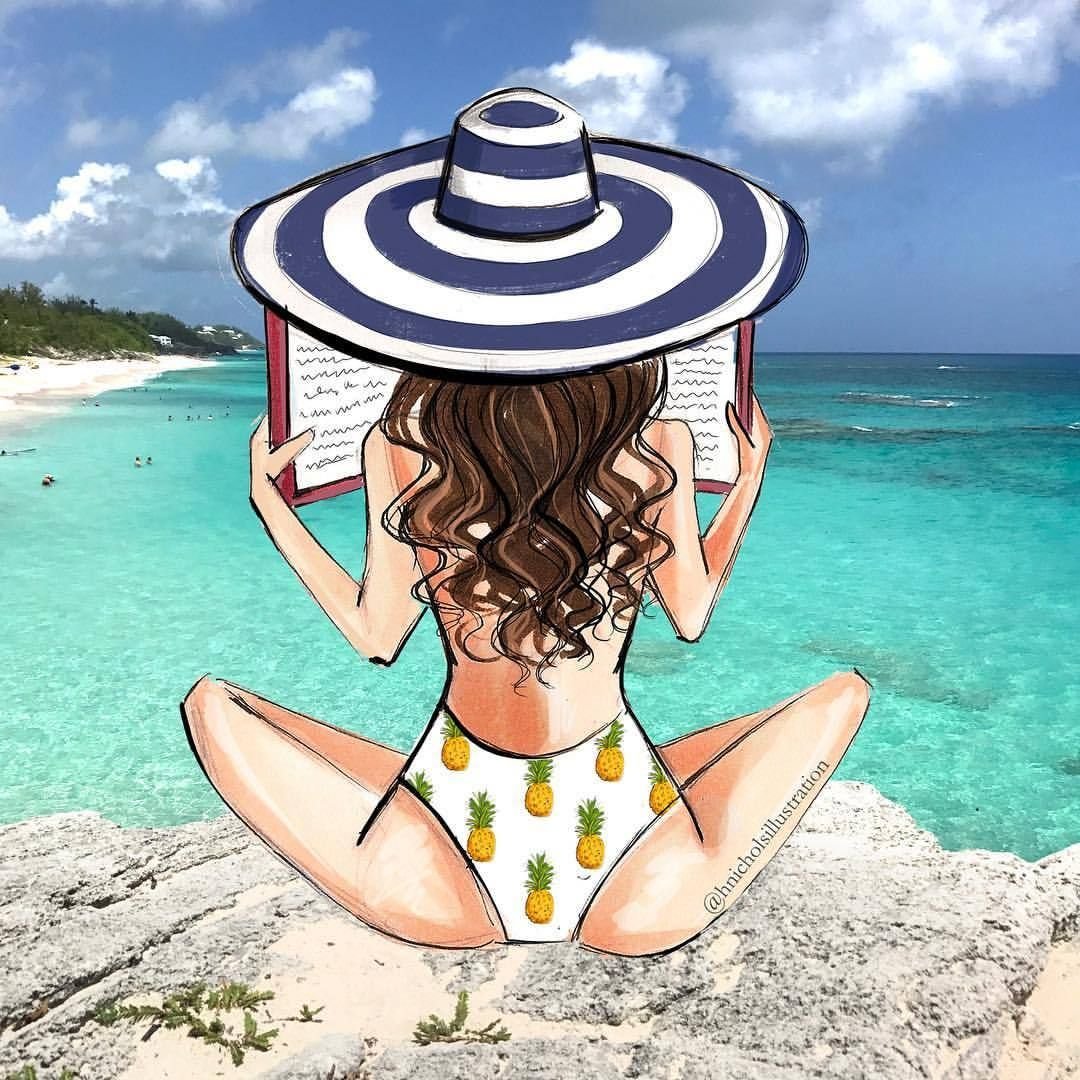Нарисованные девушки на пляже