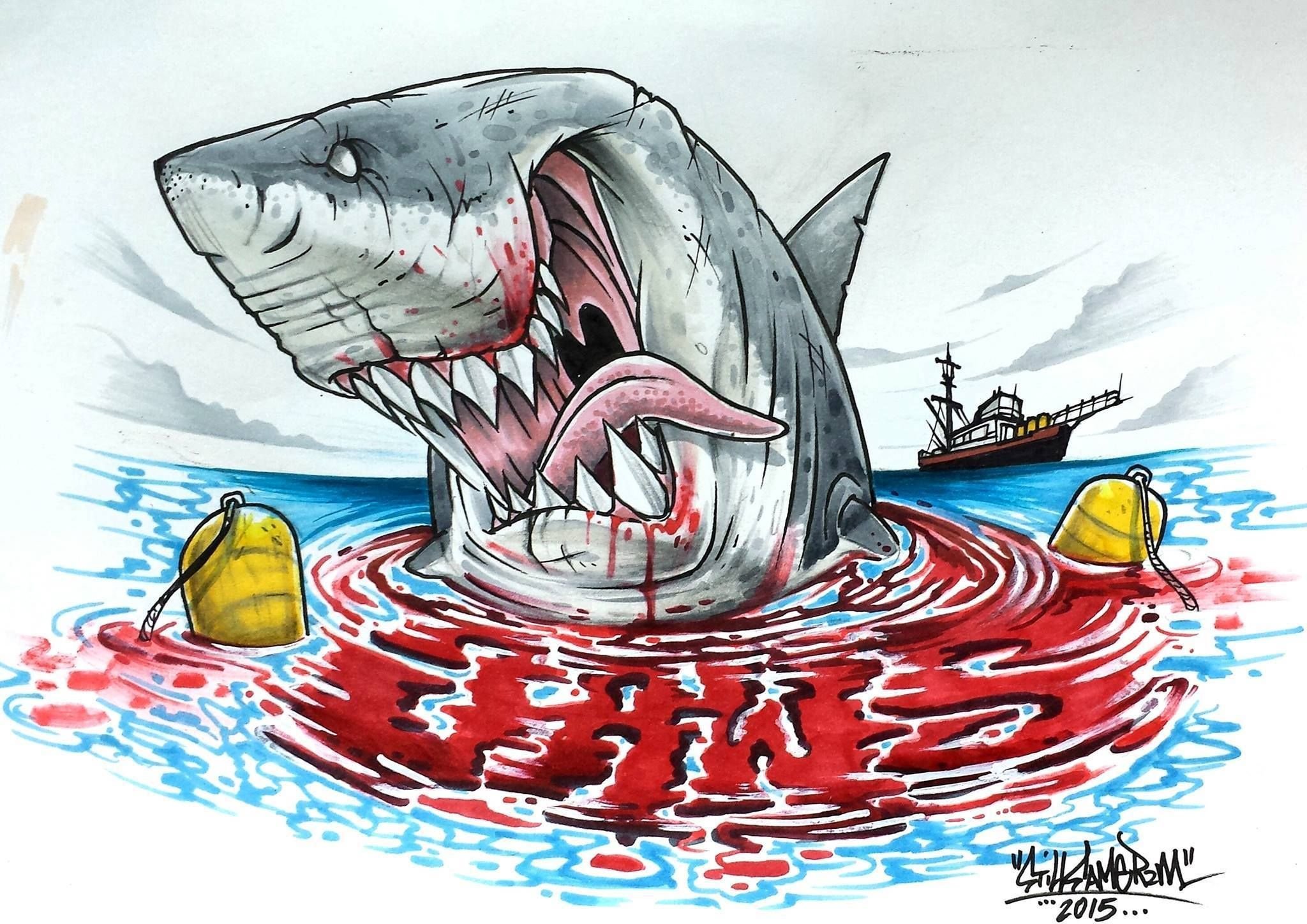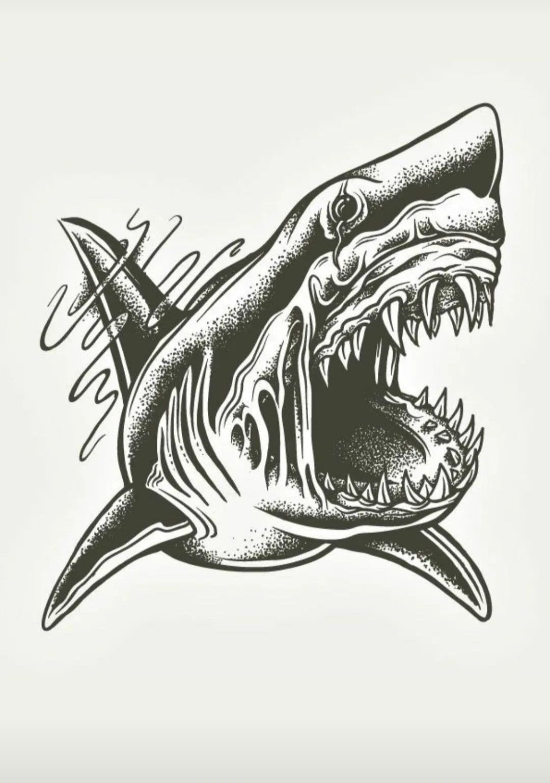 Акула с открытой пастью рисунок