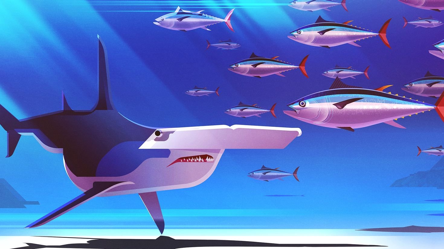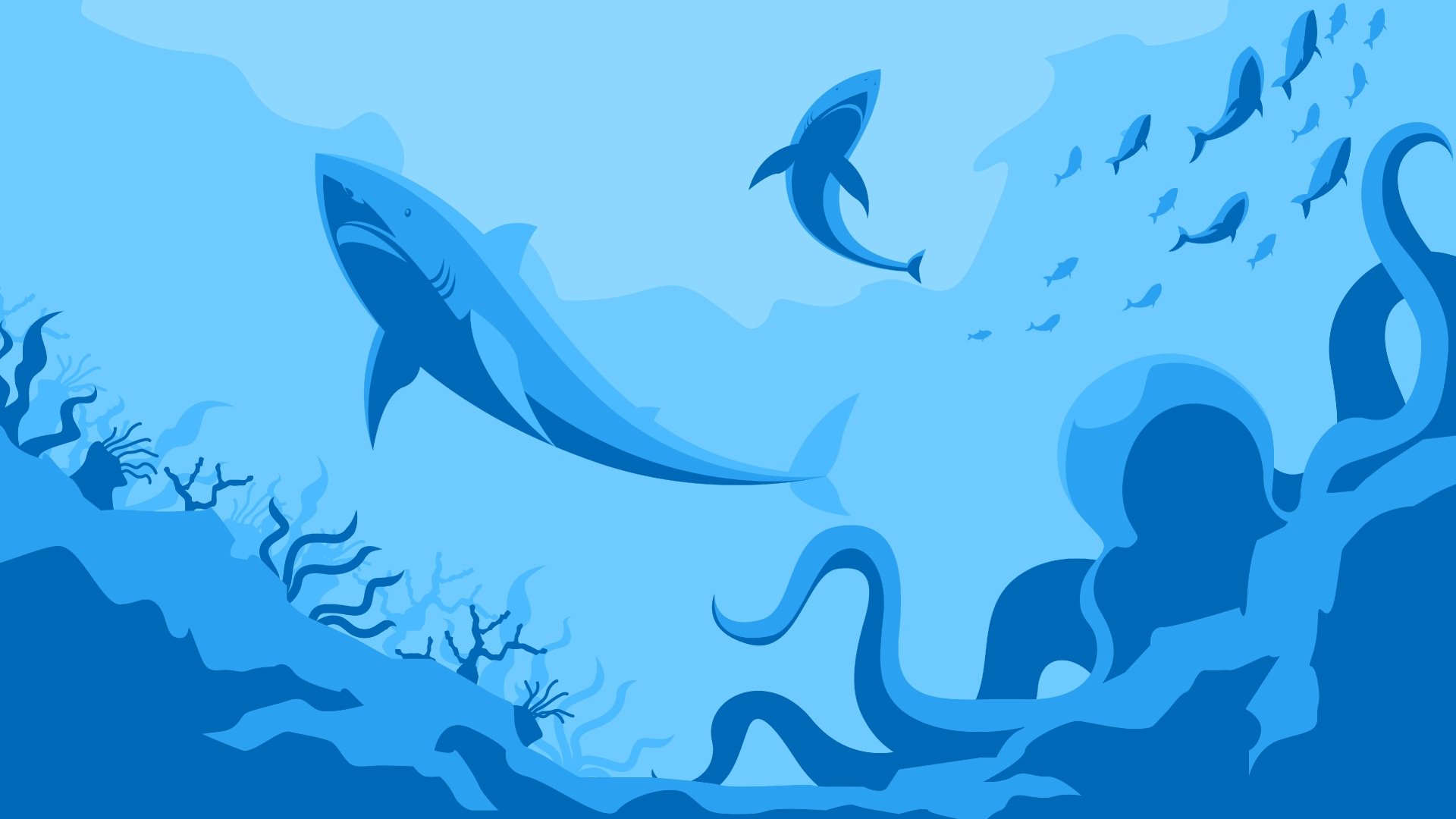 Обои в стиле акул с рыбами