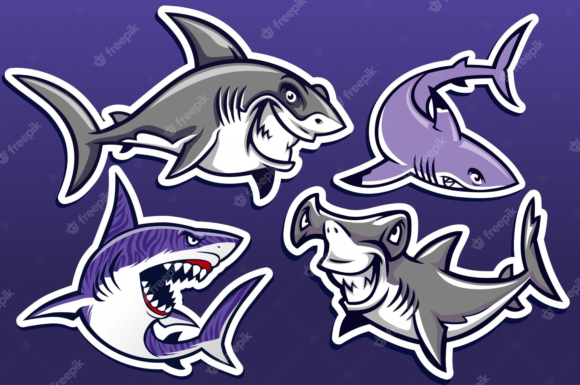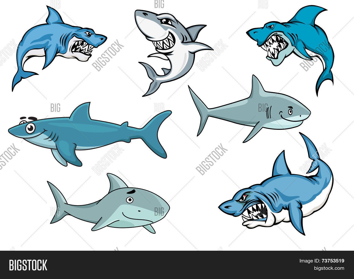 Акулы мультяшные на белом фоне